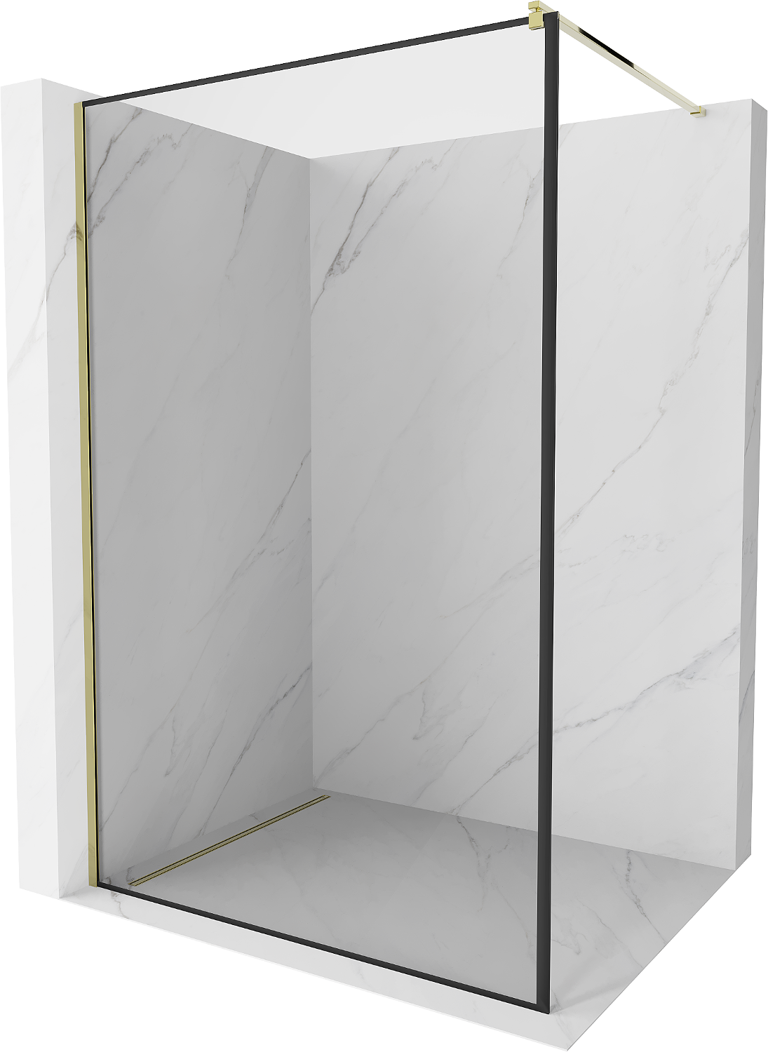 Mexen Kioto zuhanyfal Walk-in 100 x 200 cm, fekete keret 8 mm, arany - 800-100-101-50-70