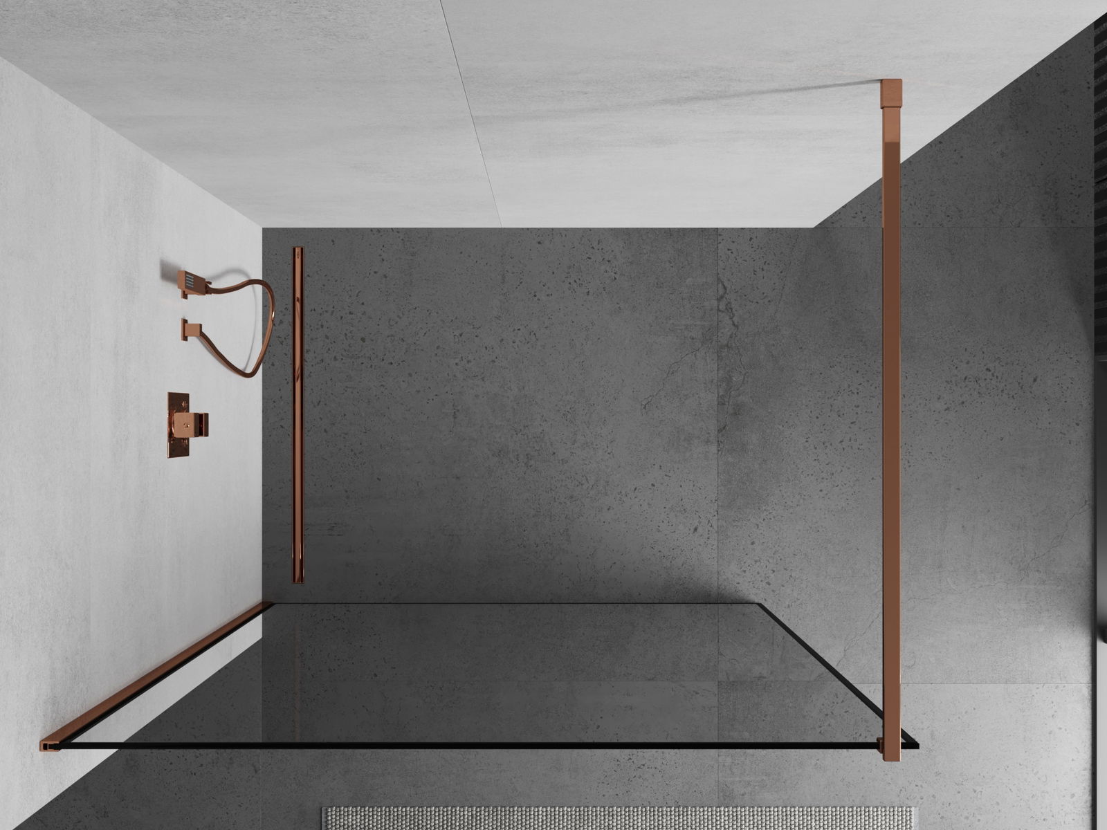 Mexen Kioto zuhanyfal Walk-in 120 x 200 cm, fekete keret 8 mm, rózsaarany - 800-120-101-60-70