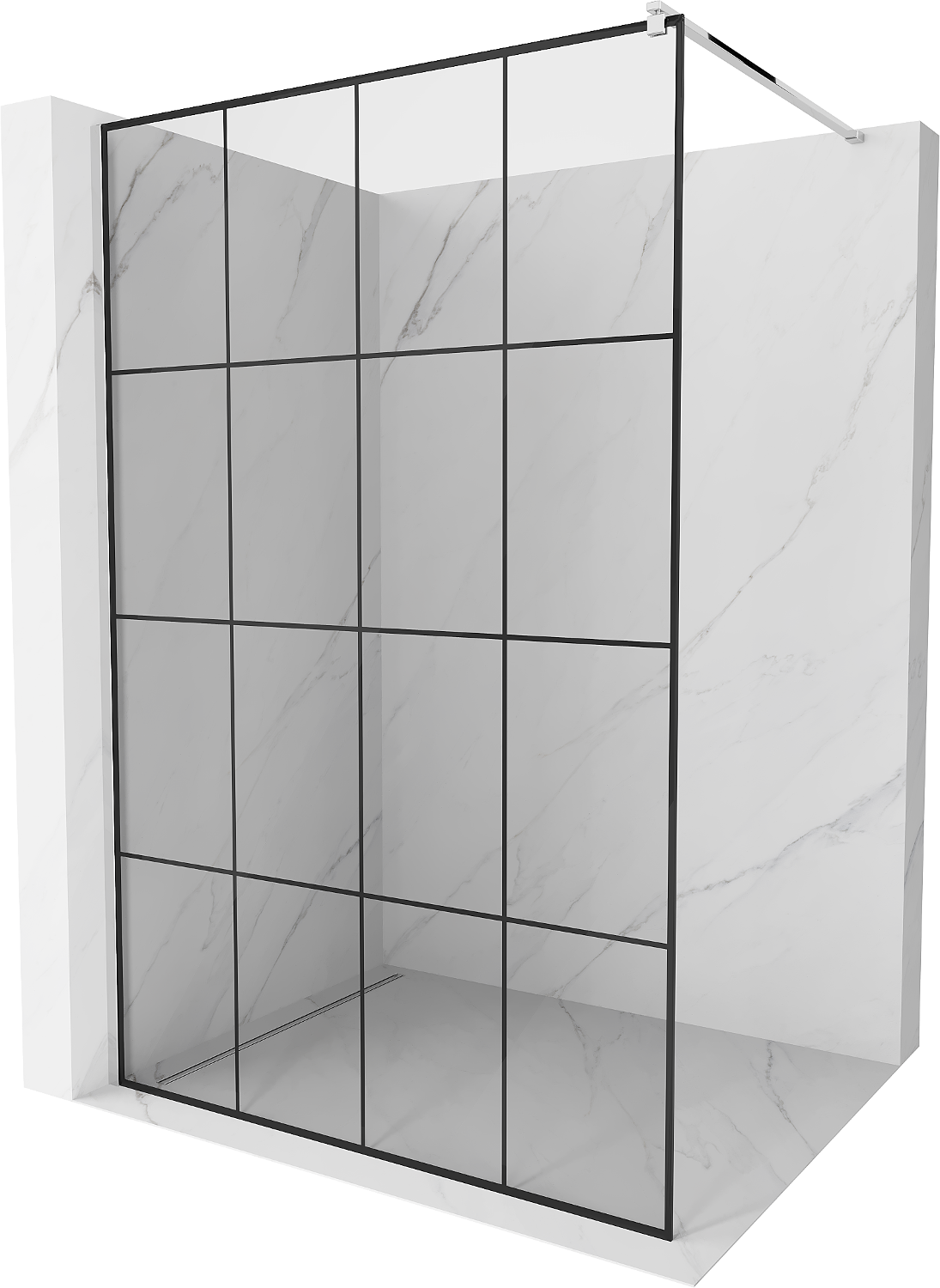 Mexen Kioto zuhanyfal Walk-in 130 x 200 cm, fekete rács 8 mm, króm - 800-130-101-01-77