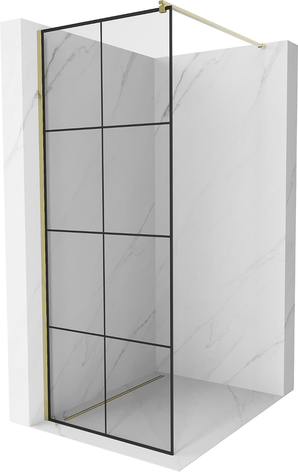 Mexen Kioto zuhanyfal Walk-in 80 x 200 cm, fekete rács 8 mm, arany - 800-080-101-50-77