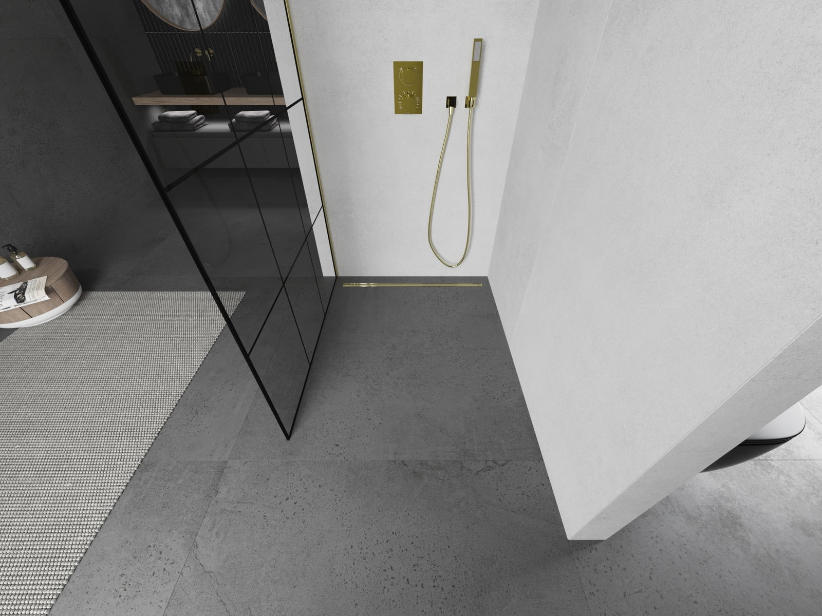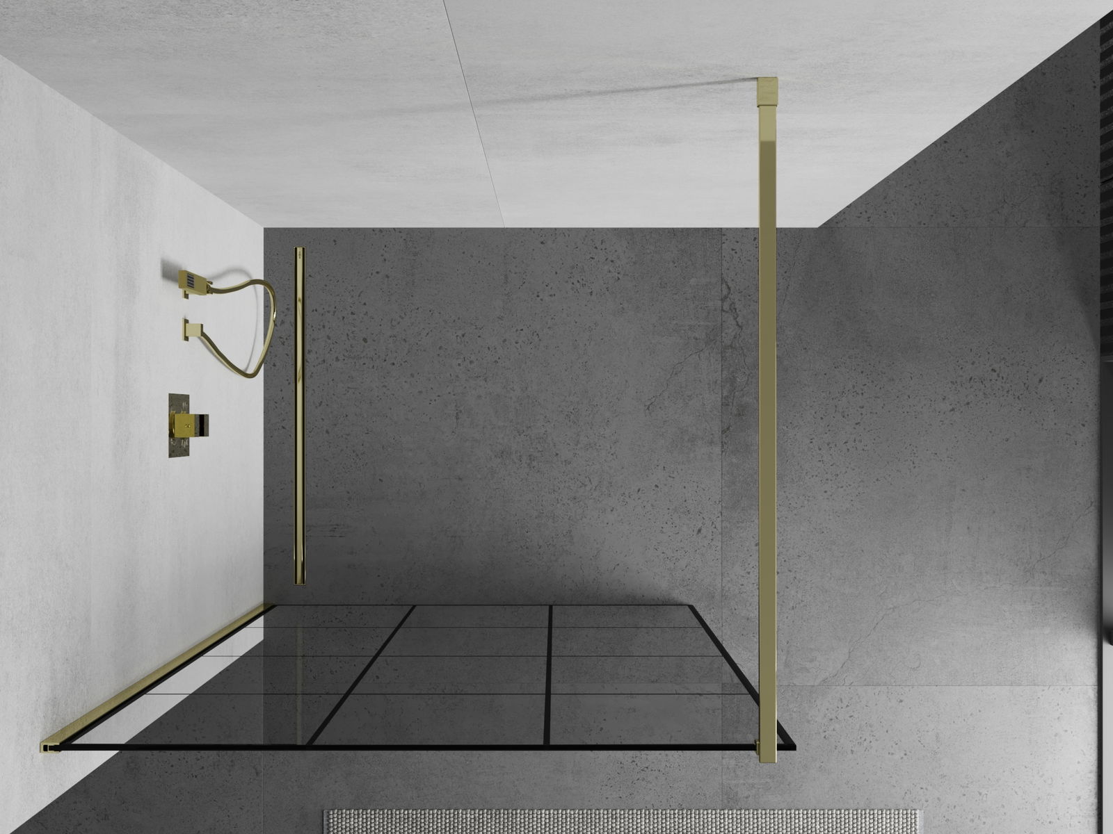 Mexen Kioto zuhanyfal Walk-in 110 x 200 cm, fekete rács 8 mm, arany - 800-110-101-50-77