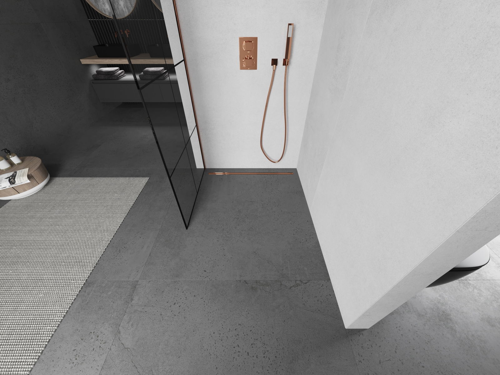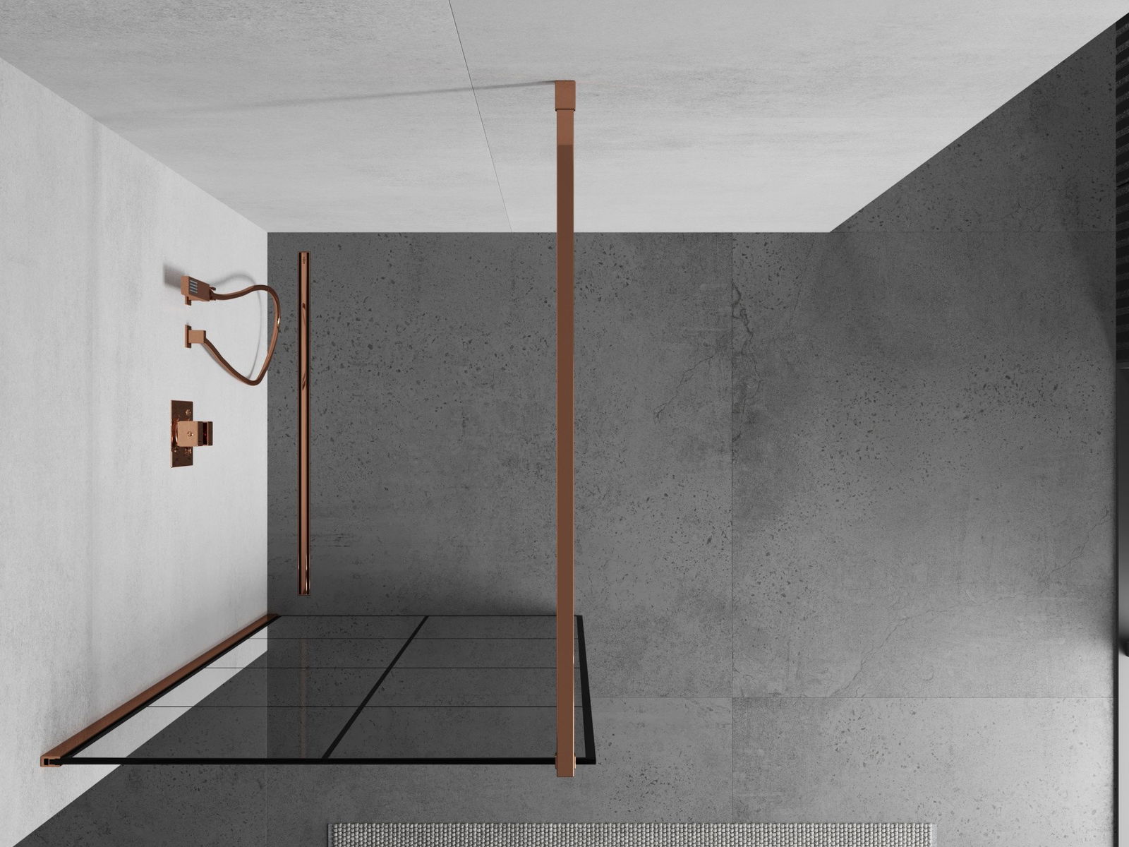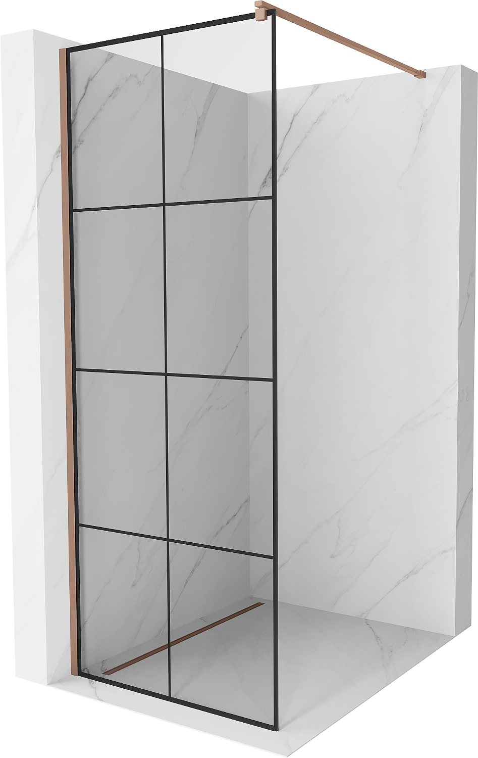 Mexen Kioto zuhanyfal Walk-in 80 x 200 cm, fekete rács 8 mm, rózsaszín arany - 800-080-101-60-77