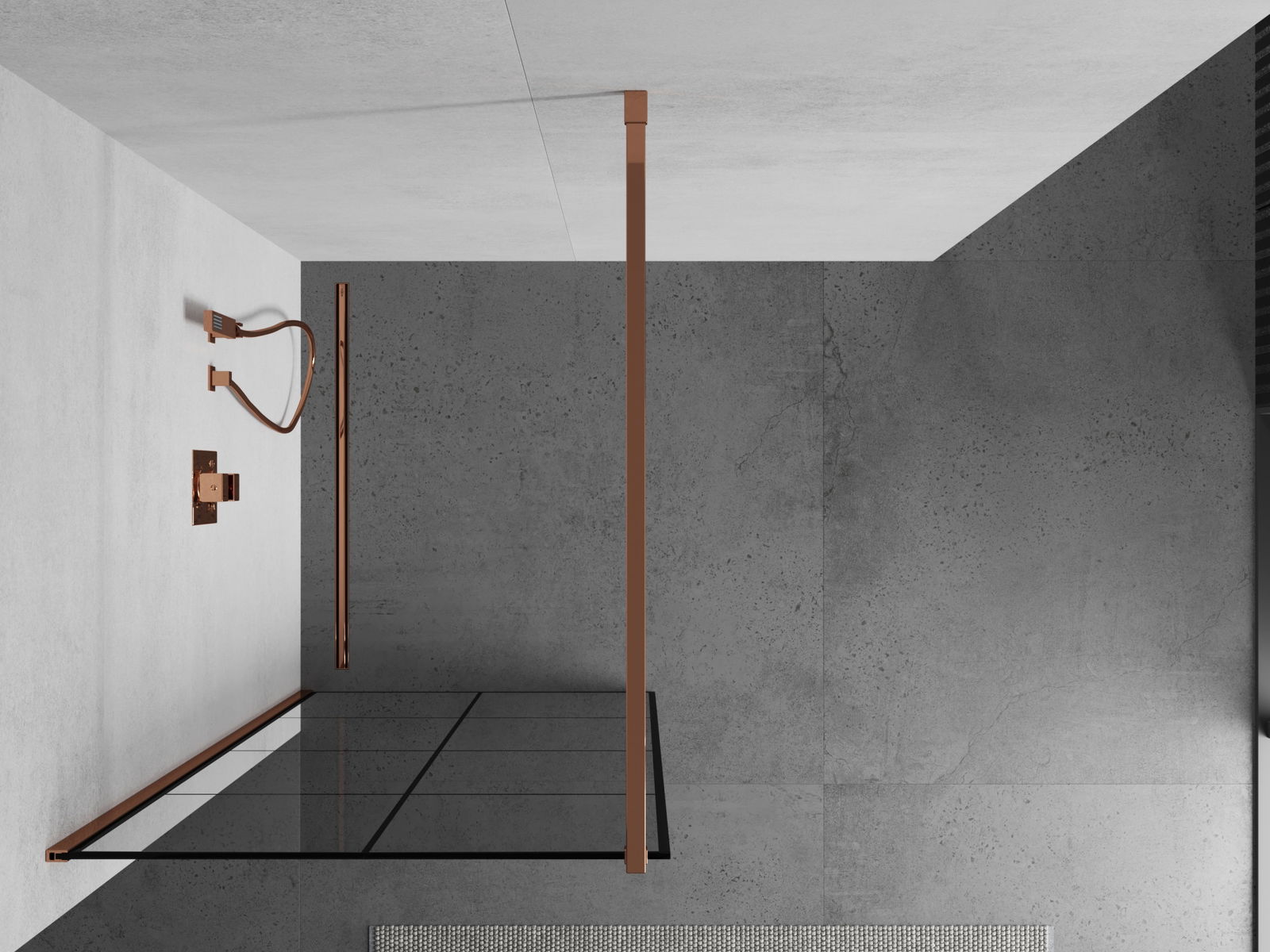 Mexen Kioto Walk-in zuhanyfal, 90 x 200 cm, fekete rácsos 8 mm, rózsaarany - 800-090-101-60-77