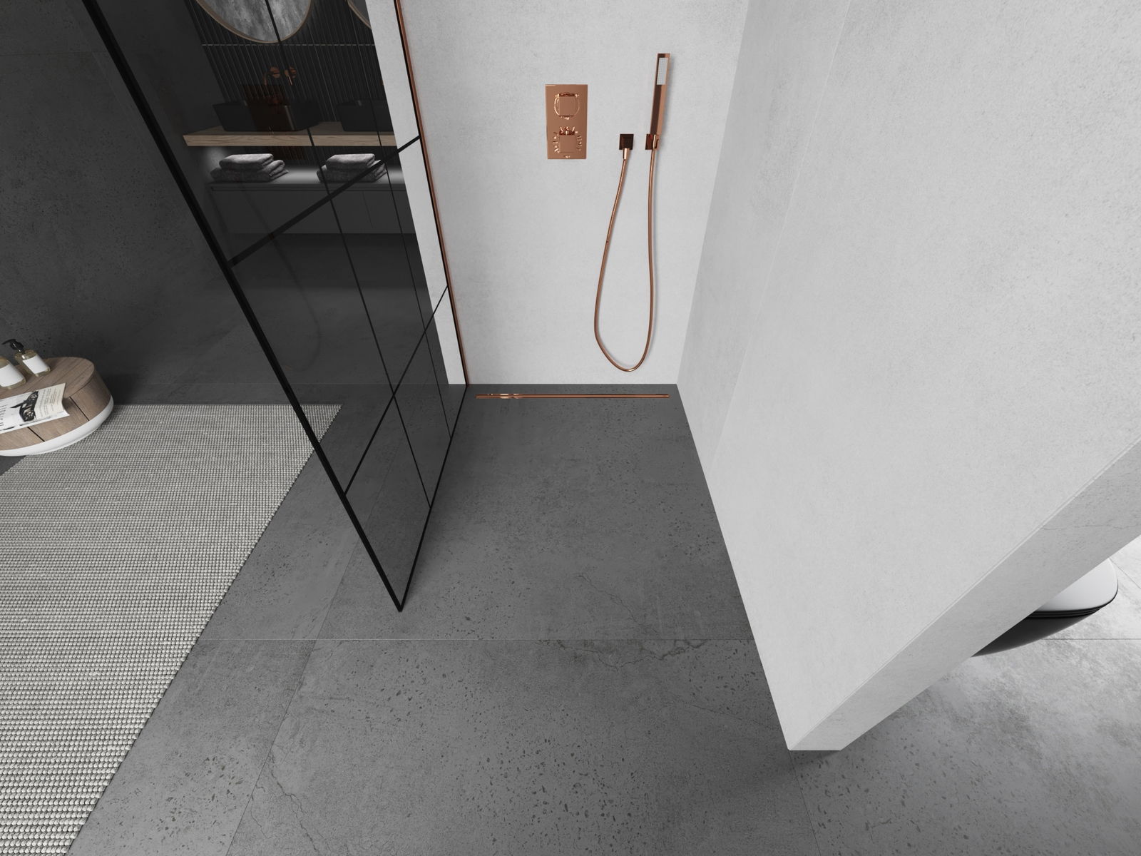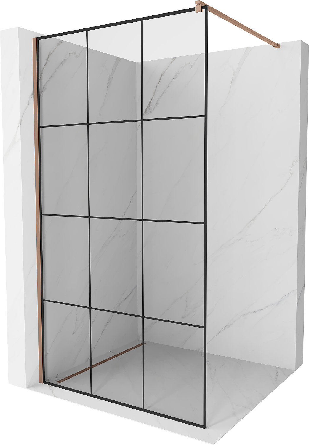 Mexen Kioto zuhanyfal Walk-in 110 x 200 cm, fekete rács 8 mm, rózsaarany - 800-110-101-60-77