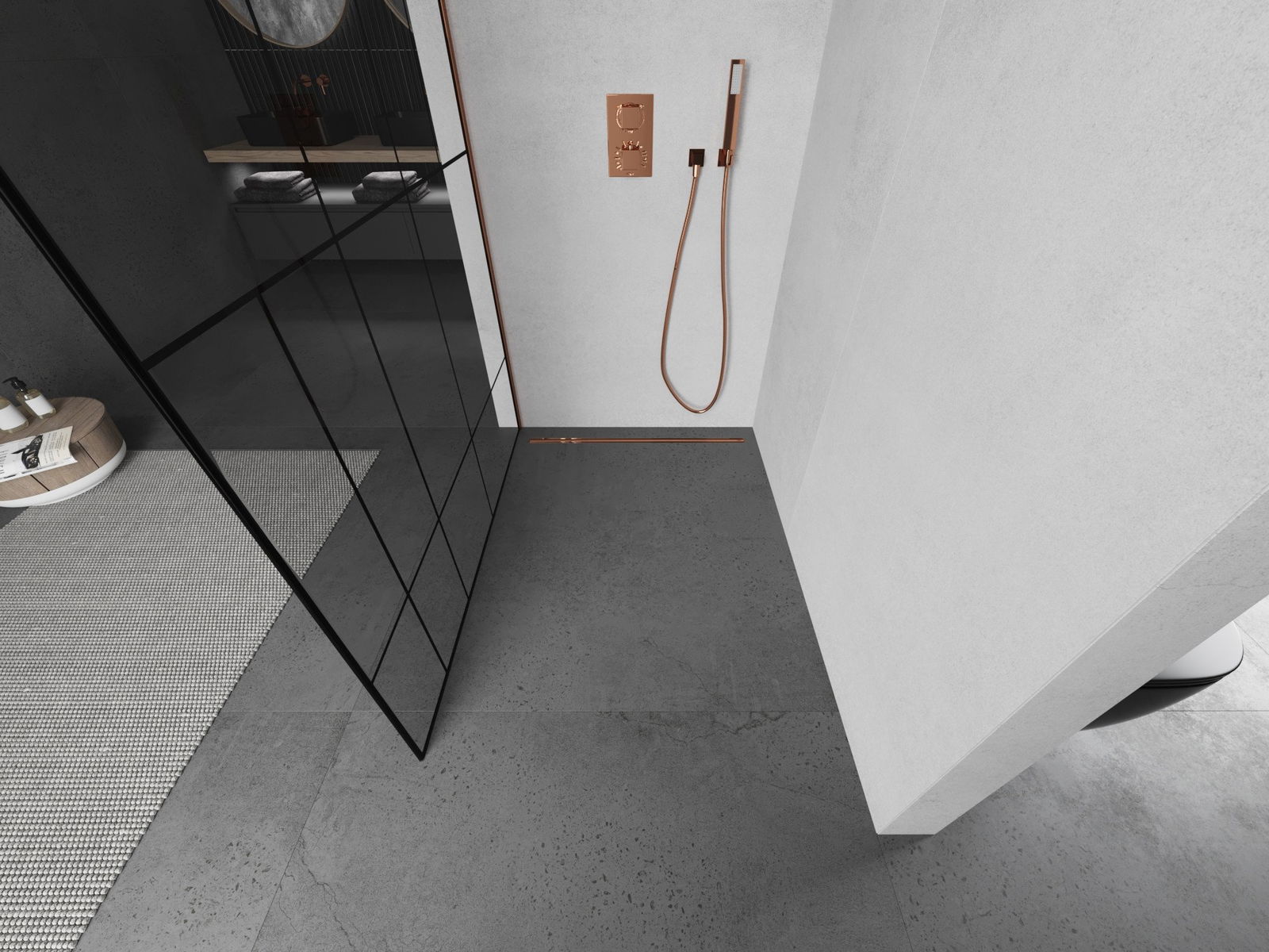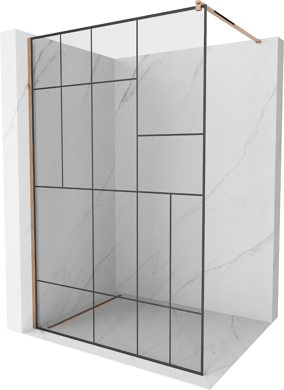 Mexen Kioto zuhanyfal Walk-in 90 x 200 cm, fekete minta 8 mm, rózsaarany - 800-090-101-60-78