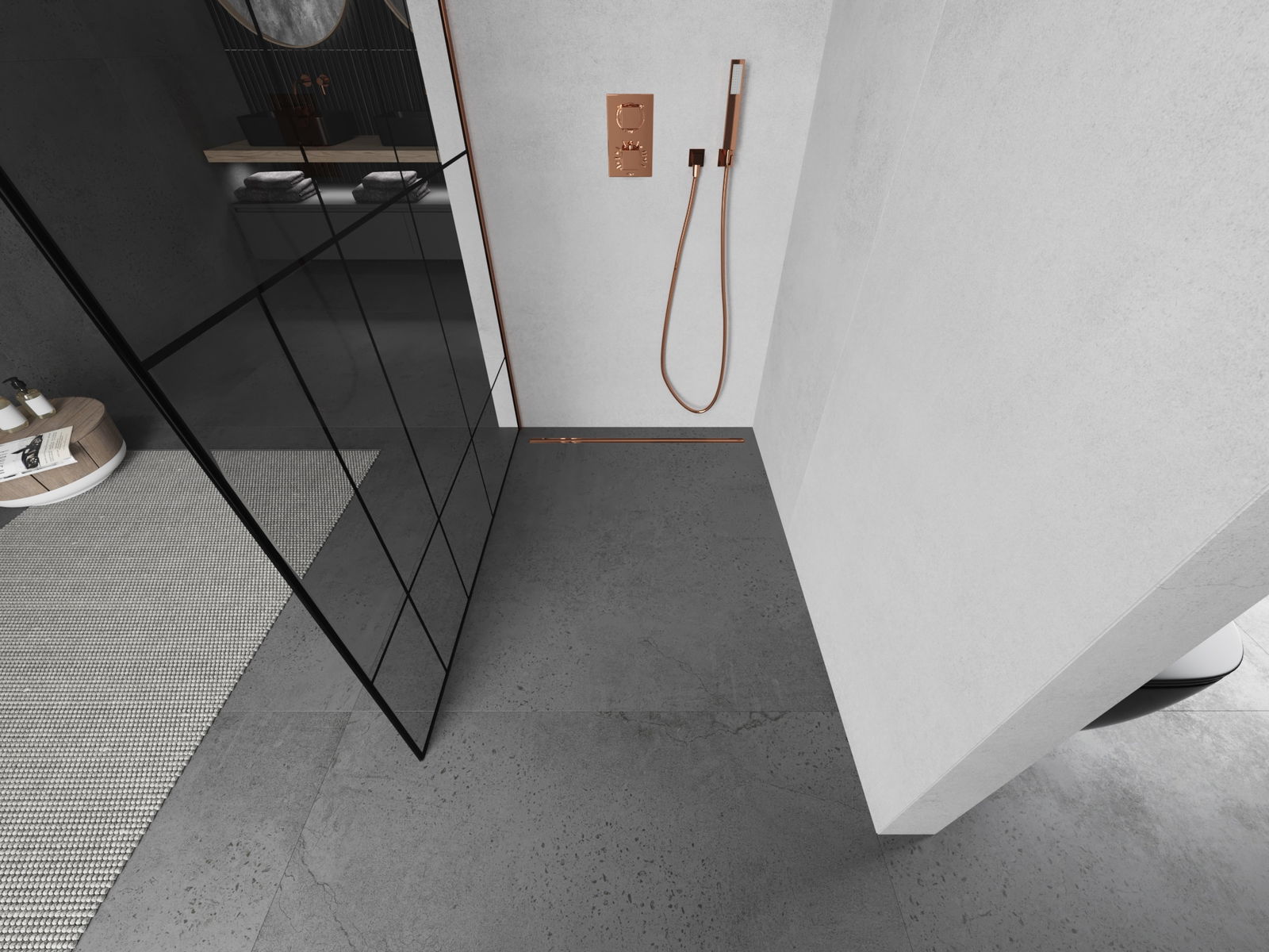 Mexen Kioto zuhanyfal Walk-in 100 x 200 cm, fekete minta 8 mm, rózsaarany - 800-100-101-60-78