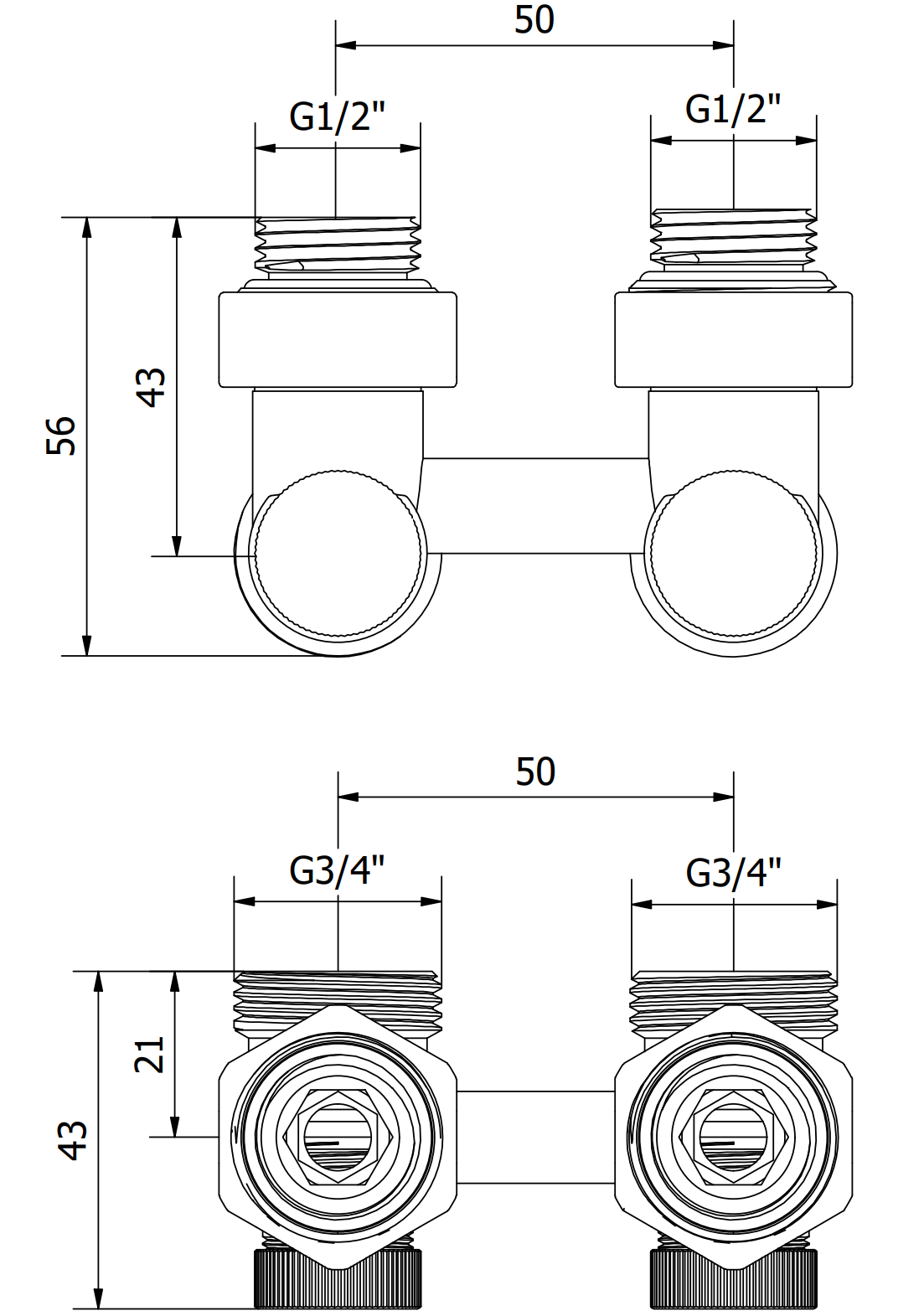 Csatlakozók G 1/2" és G 3/4"