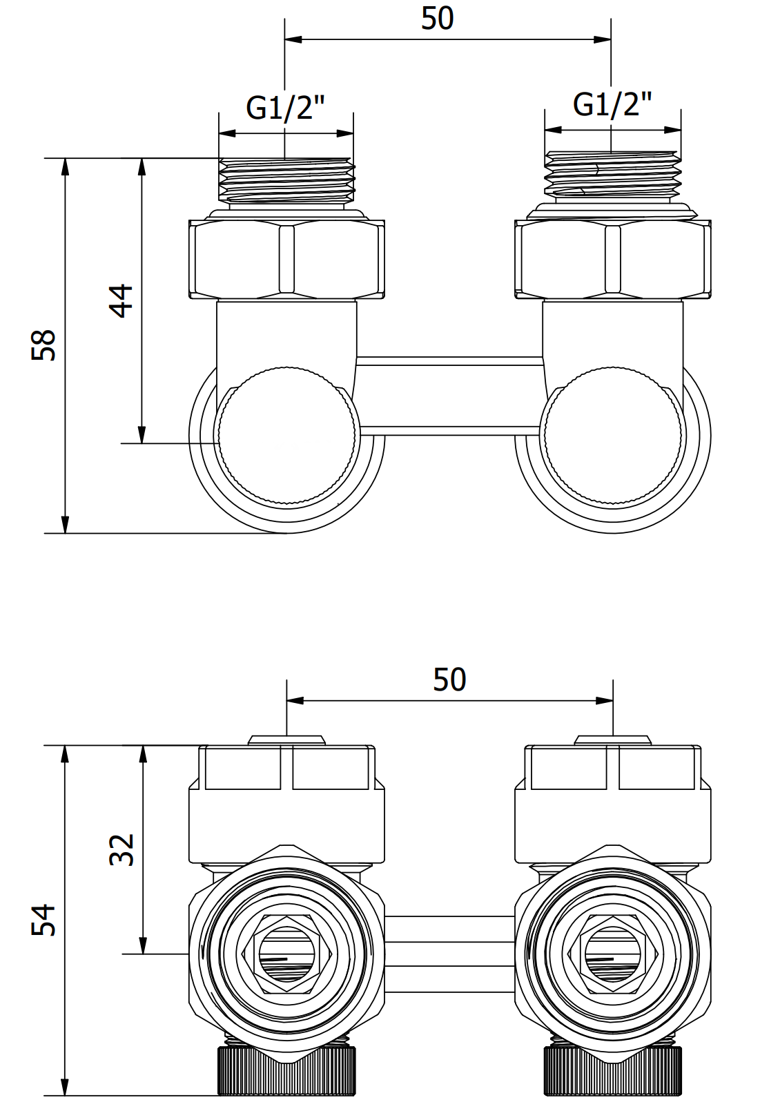 Csatlakozó átmérő: G 1/2" és pex 16x2 mm