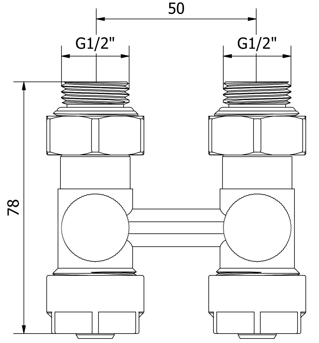 Csatlakozási átmérő: G 1/2" és pex 16 mm