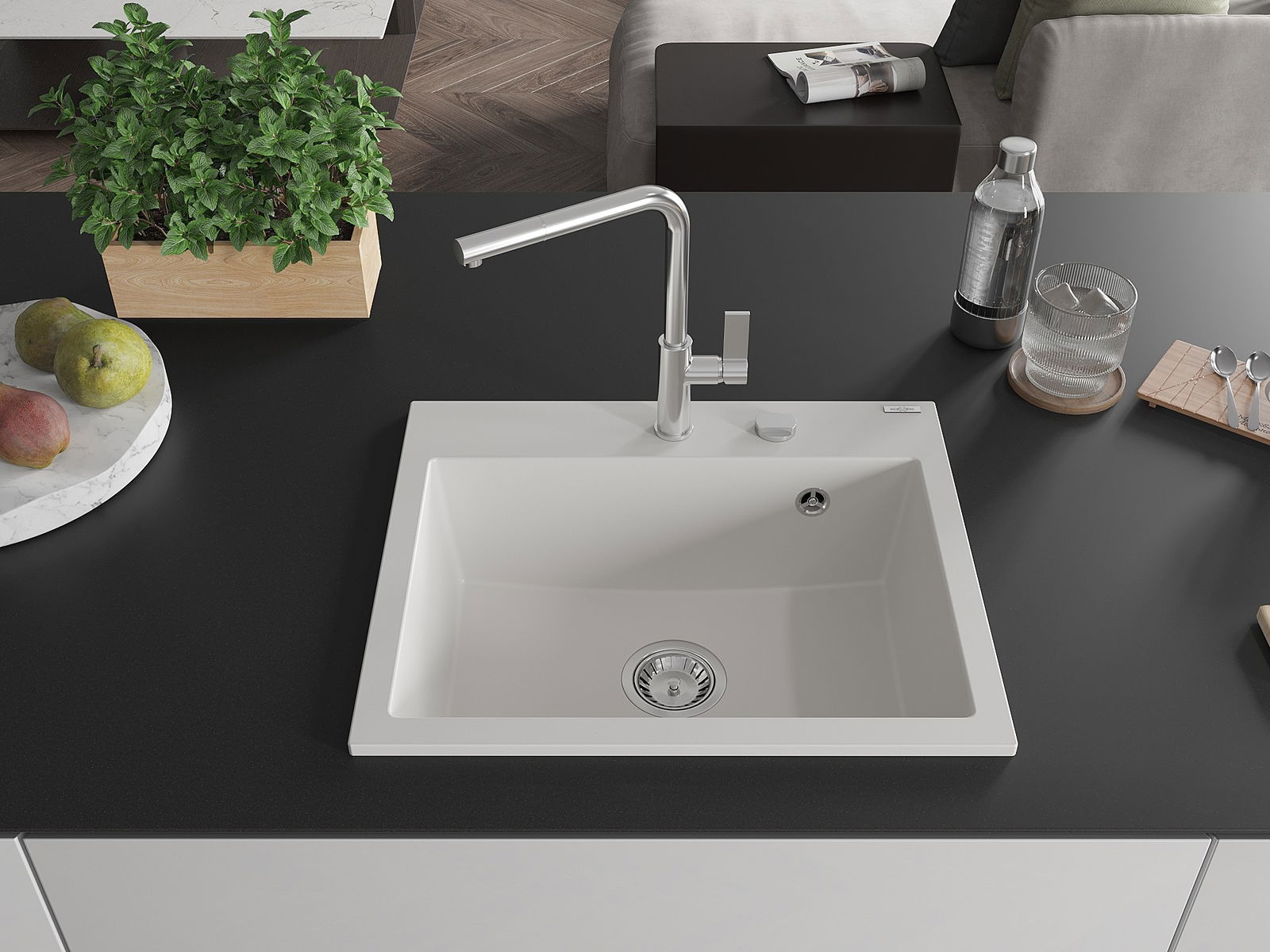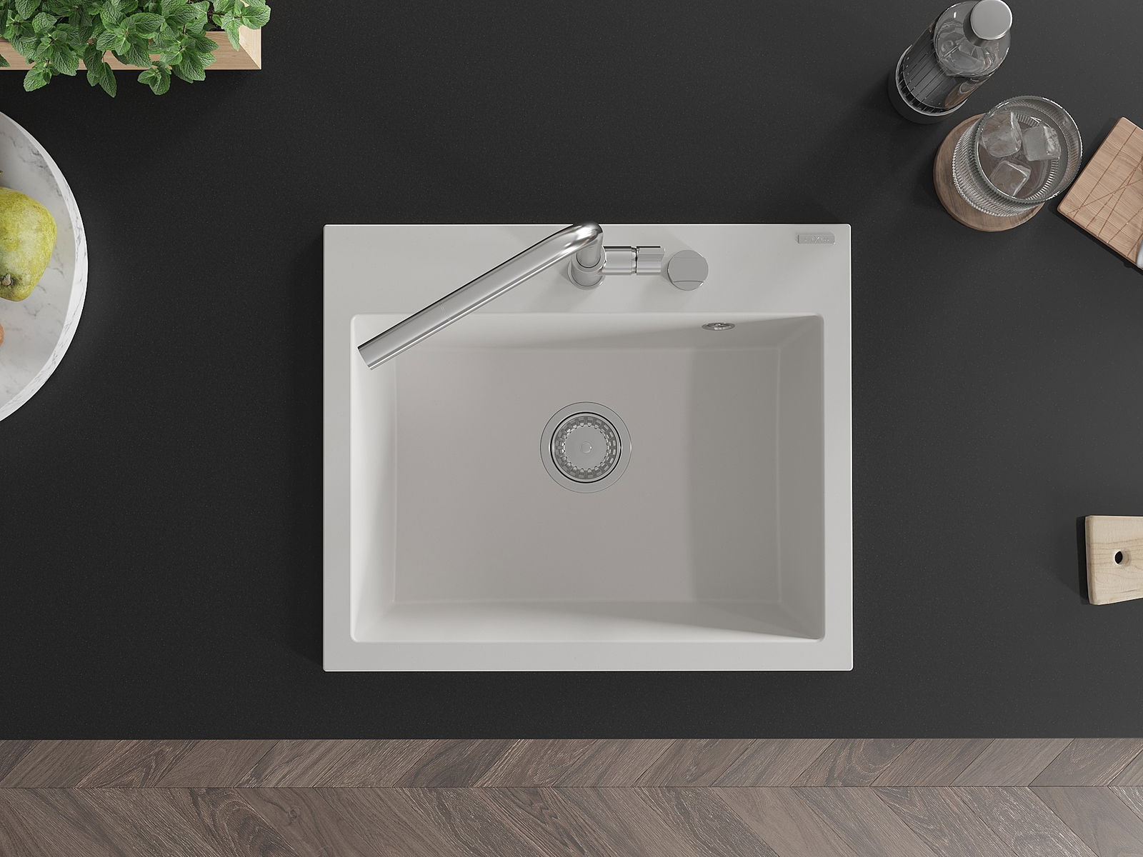 A mosogató kiváló minőségű gránitból készül. Ez egy elegáns és mindenekelőtt minden konyhához praktikus kiegészítés, stílusától függetlenül. A kiváló minőségű és a gránit tartósság biztosítja a sok éves használatát.