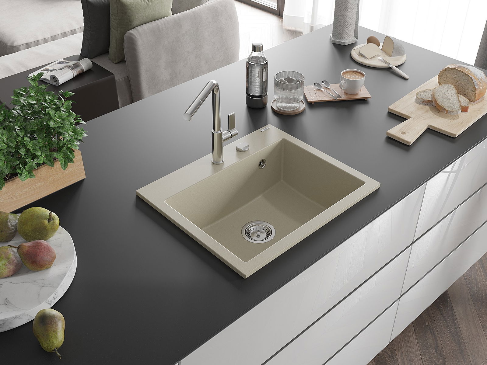 A mosogató kiváló minőségű gránitból készül. Ez egy elegáns és mindenekelőtt minden konyhához praktikus kiegészítés, stílusától függetlenül. A kiváló minőségű és a gránit tartósság biztosítja a sok éves használatát.
