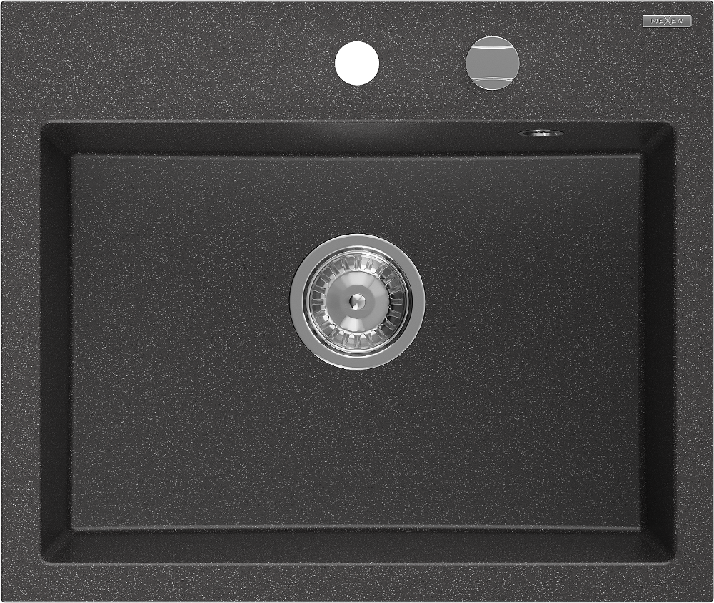 Mexen Oscar egykamrás gránit mosogató 580 x 490 mm, fekete foltos, króm szifon - 6519581000-76