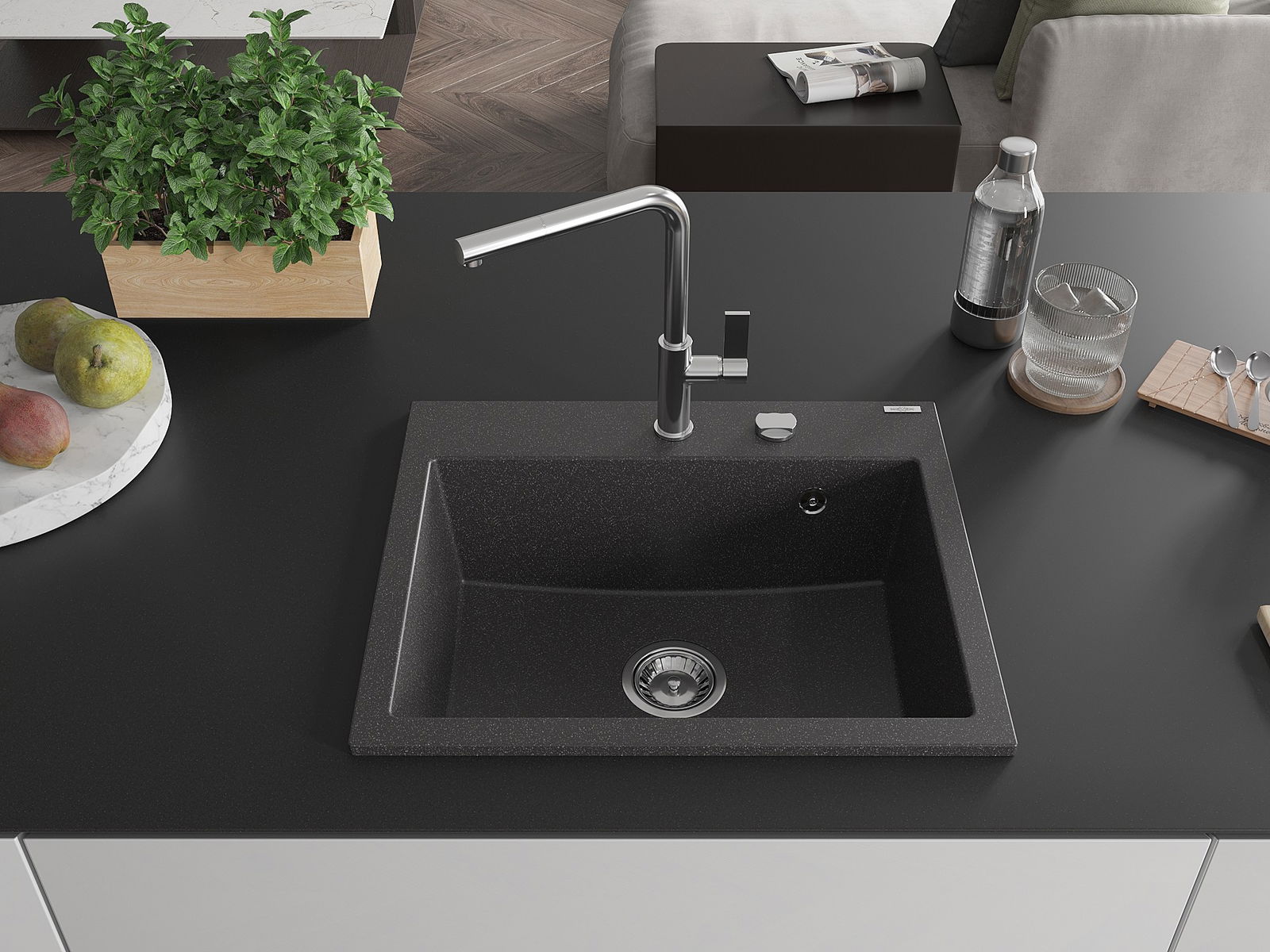 A mosogató kiváló minőségű gránitból készül. Ez egy elegáns és mindenekelőtt minden konyhához praktikus kiegészítés, stílusától függetlenül. A kiváló minőségű és a gránit tartósság biztosítja a sok éves használatát.