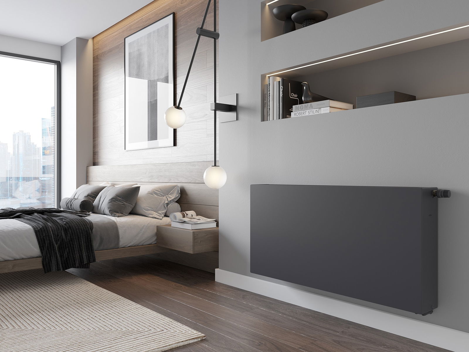 A képek a 600 x 1200 mm méretű radiátort mutatják be.