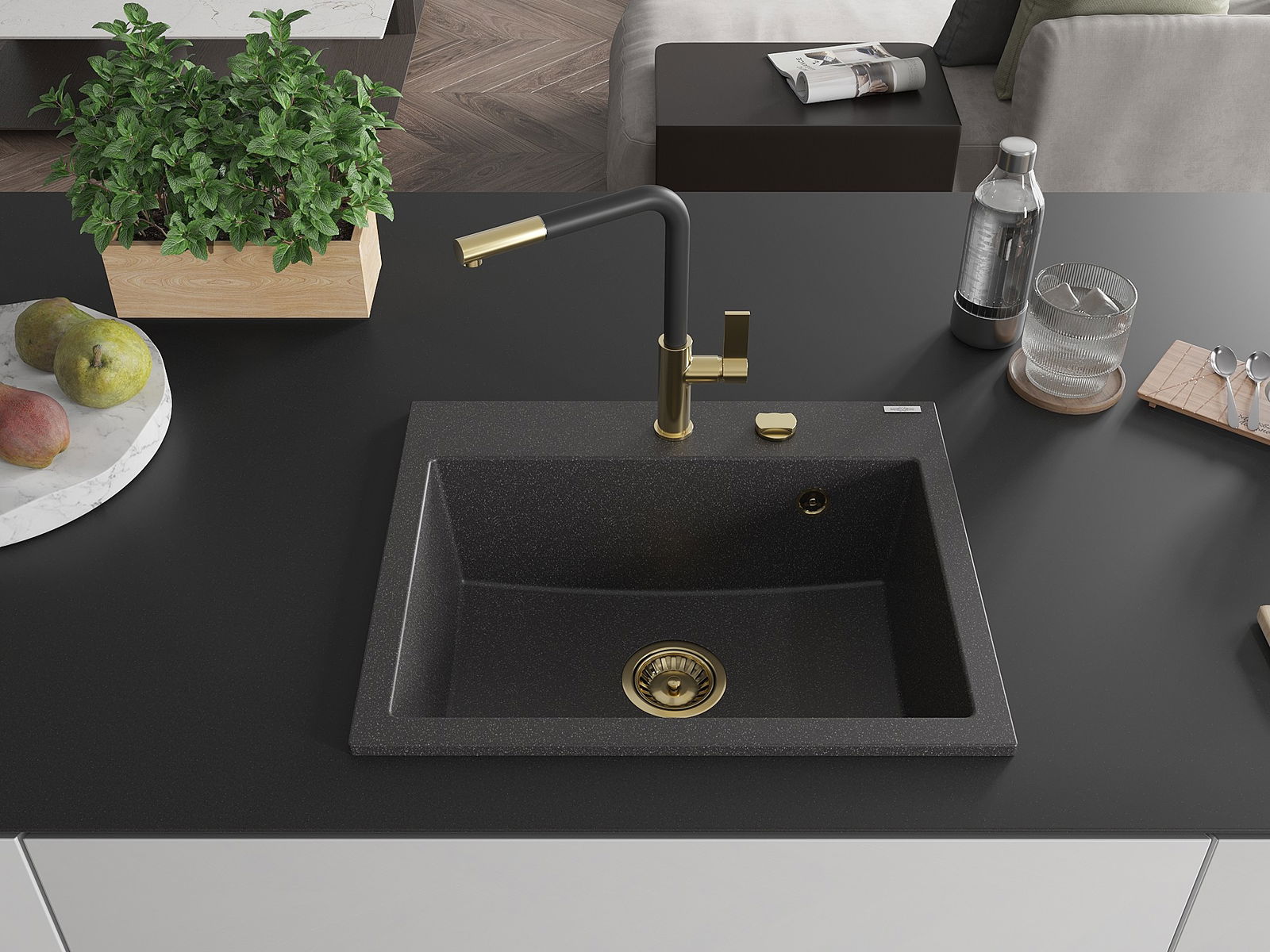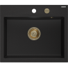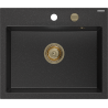Mexen Oscar egymedencés gránit mosogató 580 x 490 mm, fekete pettyes, arany szifon - 6519581000-76-G