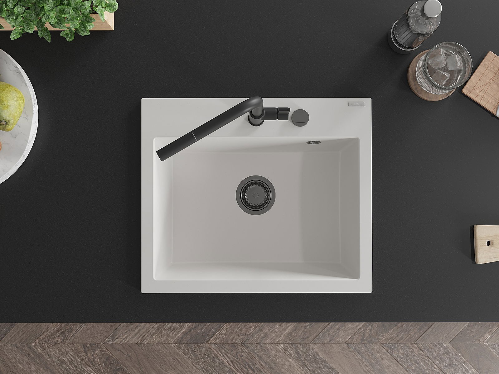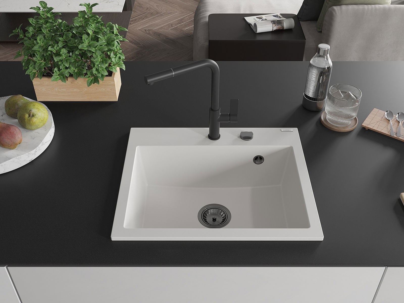 A mosogató kiváló minőségű gránitból készül. Ez egy elegáns és mindenekelőtt minden konyhához praktikus kiegészítés, stílusától függetlenül. A kiváló minőségű és a gránit tartósság biztosítja a sok éves használatát.