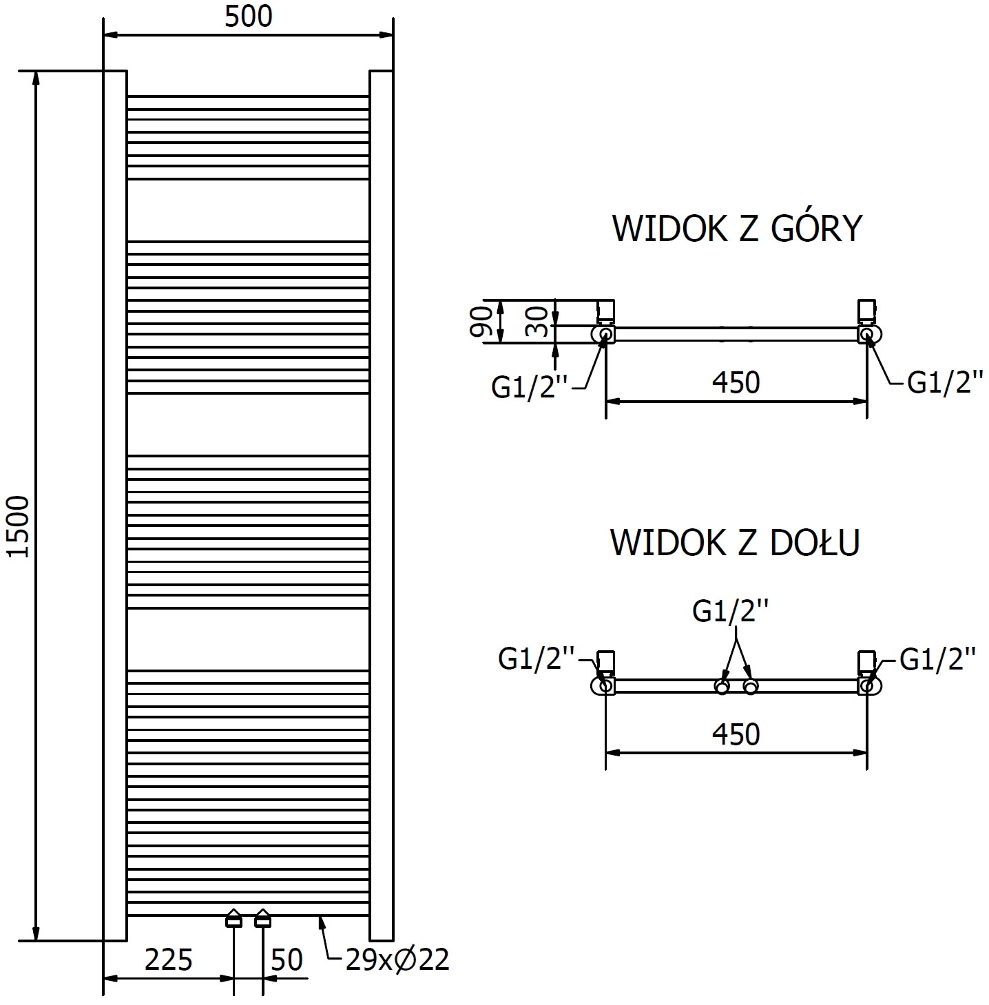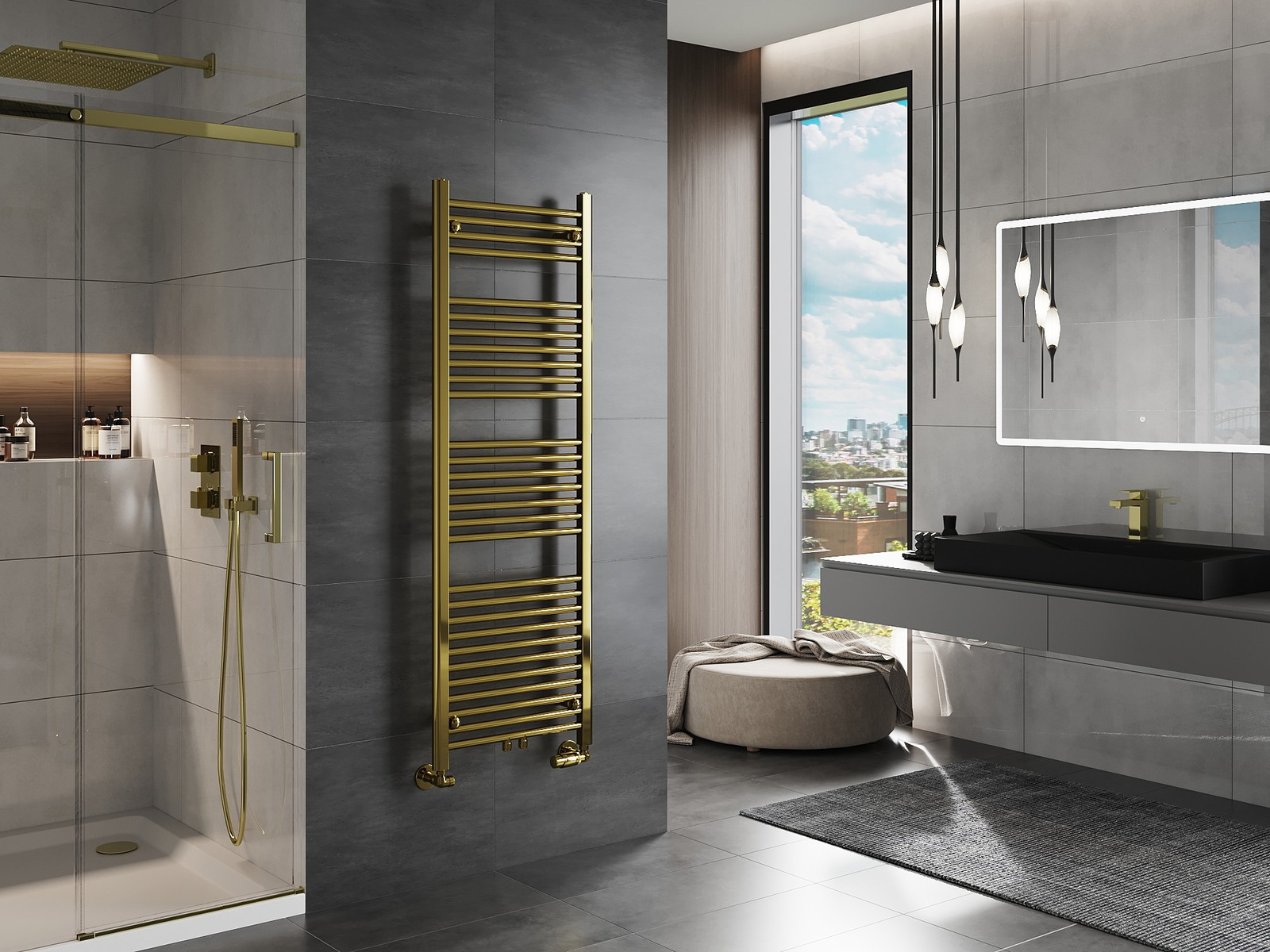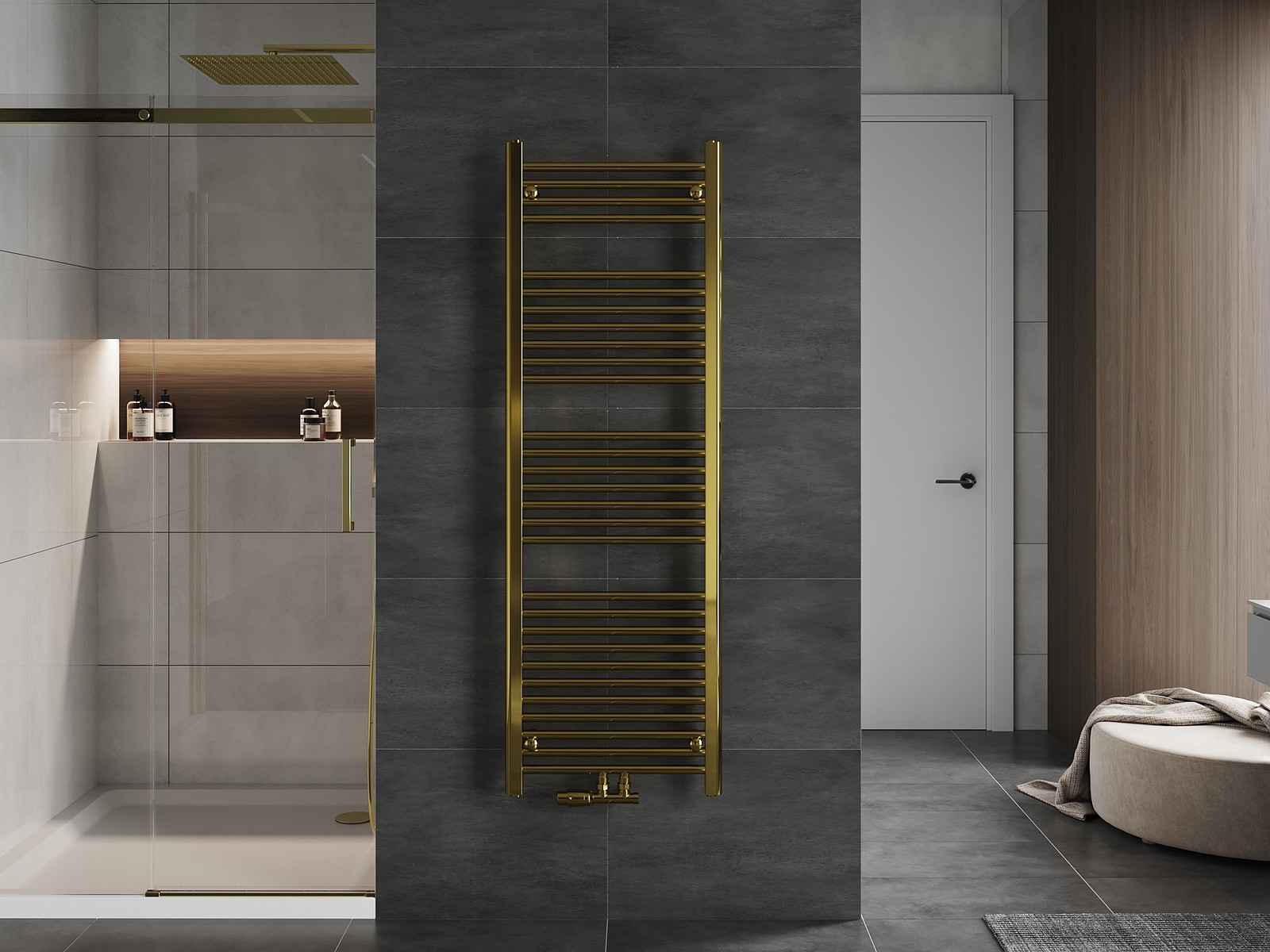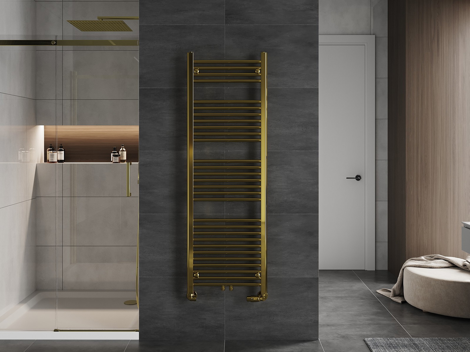 A Mexen Mars egy elegáns fürdőszobai fűtőtest lenyűgöző 1500x500 mm méretekkel és 494 W fűtési teljesítménnyel. Tartós acélból készült, arany festékréteggel, amely ellenáll a korróziónak. Kitűnik a magas minőségű kialakítással és az A1 tűzreakciós osztályú hatékony reakcióval. Különböző csatlakozási lehetőségek (2xG ½″ középső, 4xG ½″) és 95 °C maximális üzemi hőmérséklet miatt ideális bármilyen fürdőszobába. Kényelmes a szerelés a mellékelt szerelőkészlettel.