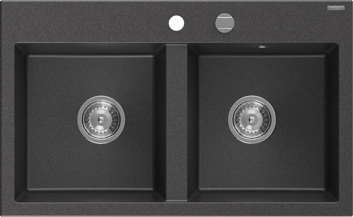 Mexen Hektor 2 rekeszes gránit mosogató 800 x 480 mm, fekete pöttyös, króm szifon - 6521802000-76