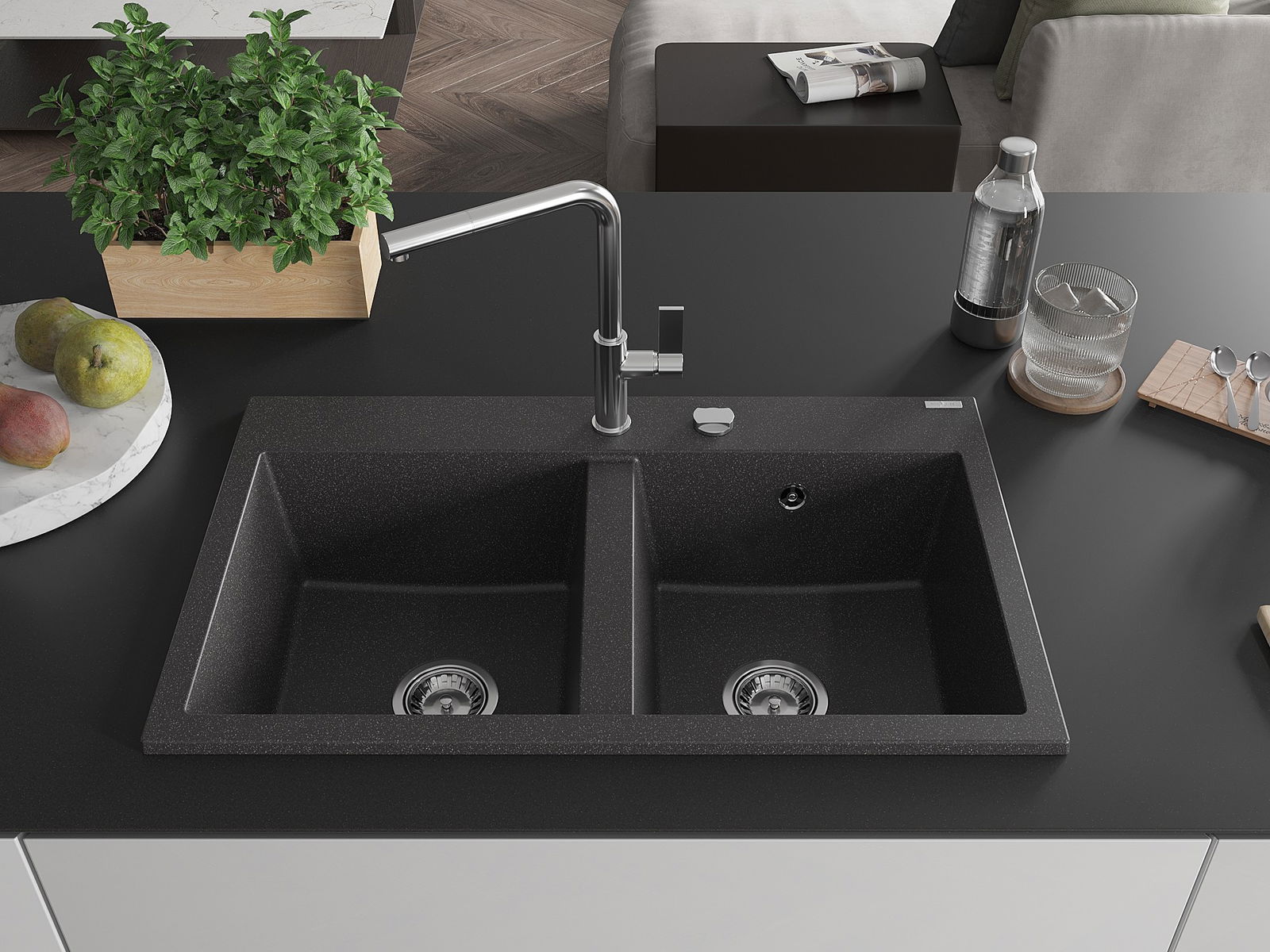 A mosogató magas minőségű gránitból készült. Elegáns, de mindenekelőtt praktikus kiegészítője minden konyhának, függetlenül annak stílusától. A gránit magas minősége és tartóssága hosszú távú használatot biztosít.