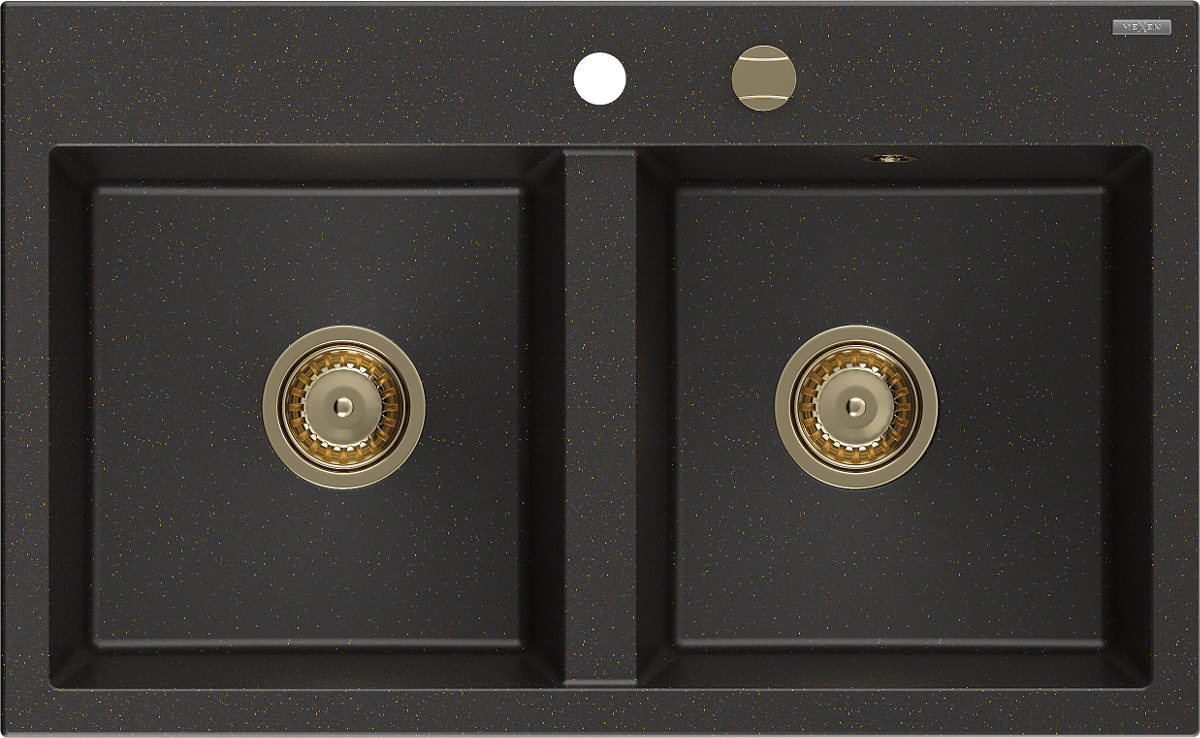 Mexen Hektor 2-medencés gránit mosogató 800 x 480 mm, fekete/arany metál, arany szifon - 6521802000-75-G
