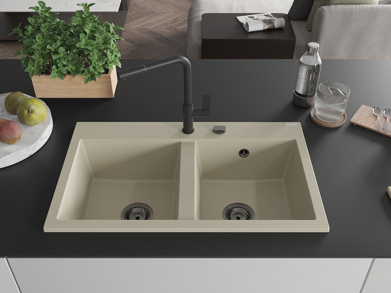 A mosogató magas minőségű gránitból készült. Elegáns, de mindenekelőtt praktikus kiegészítője minden konyhának, függetlenül annak stílusától. A gránit magas minősége és tartóssága hosszú távú használatot biztosít.
