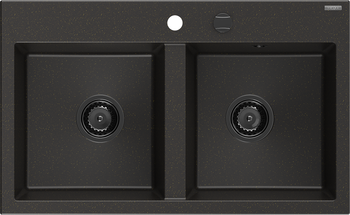 Mexen Hektor gránit mosogató kétkamrás 800 x 480 mm, fekete/arany metál, fekete szifonnal - 6521802000-75-B