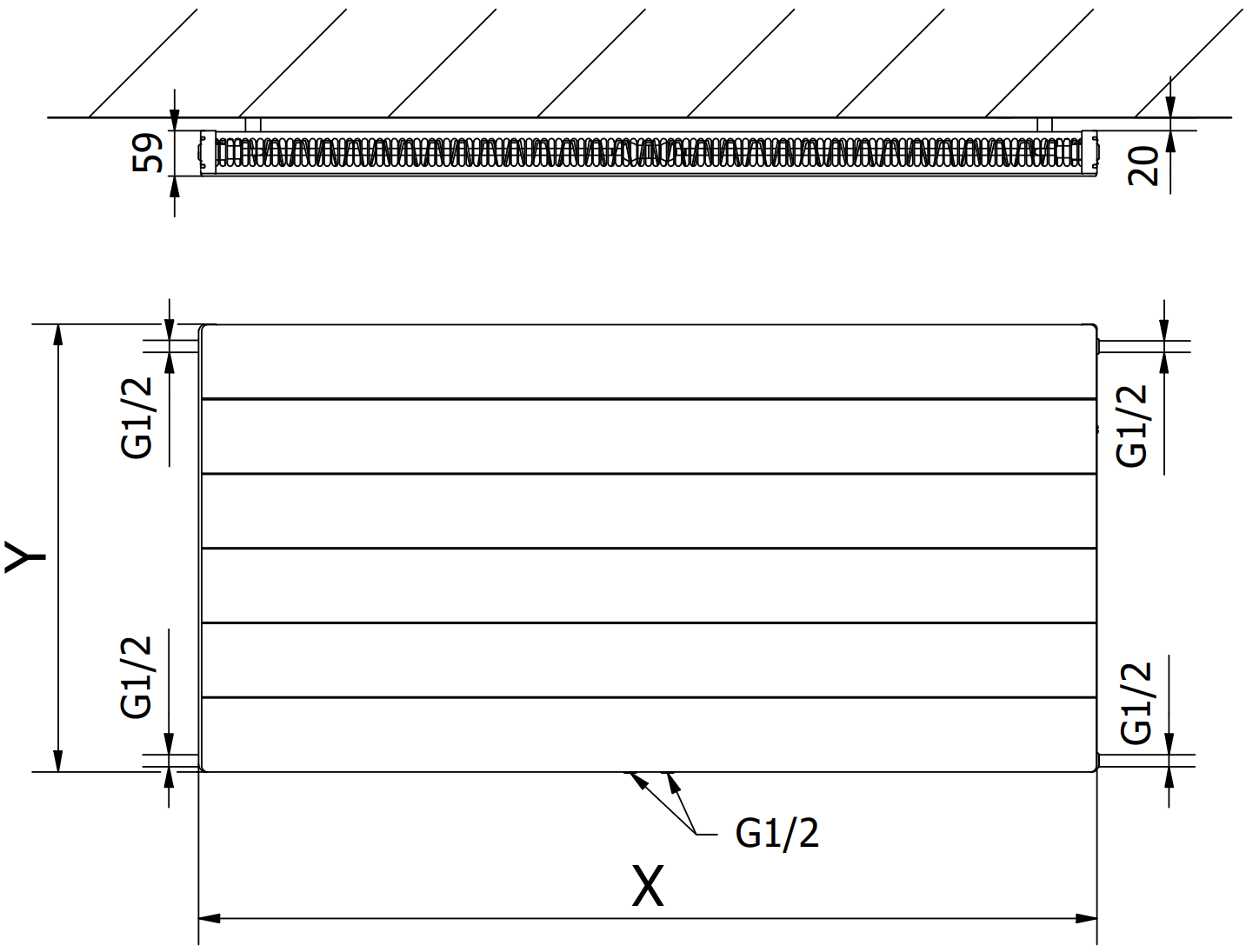 A képek a 600 x 1200 mm méretű radiátort mutatják be.
