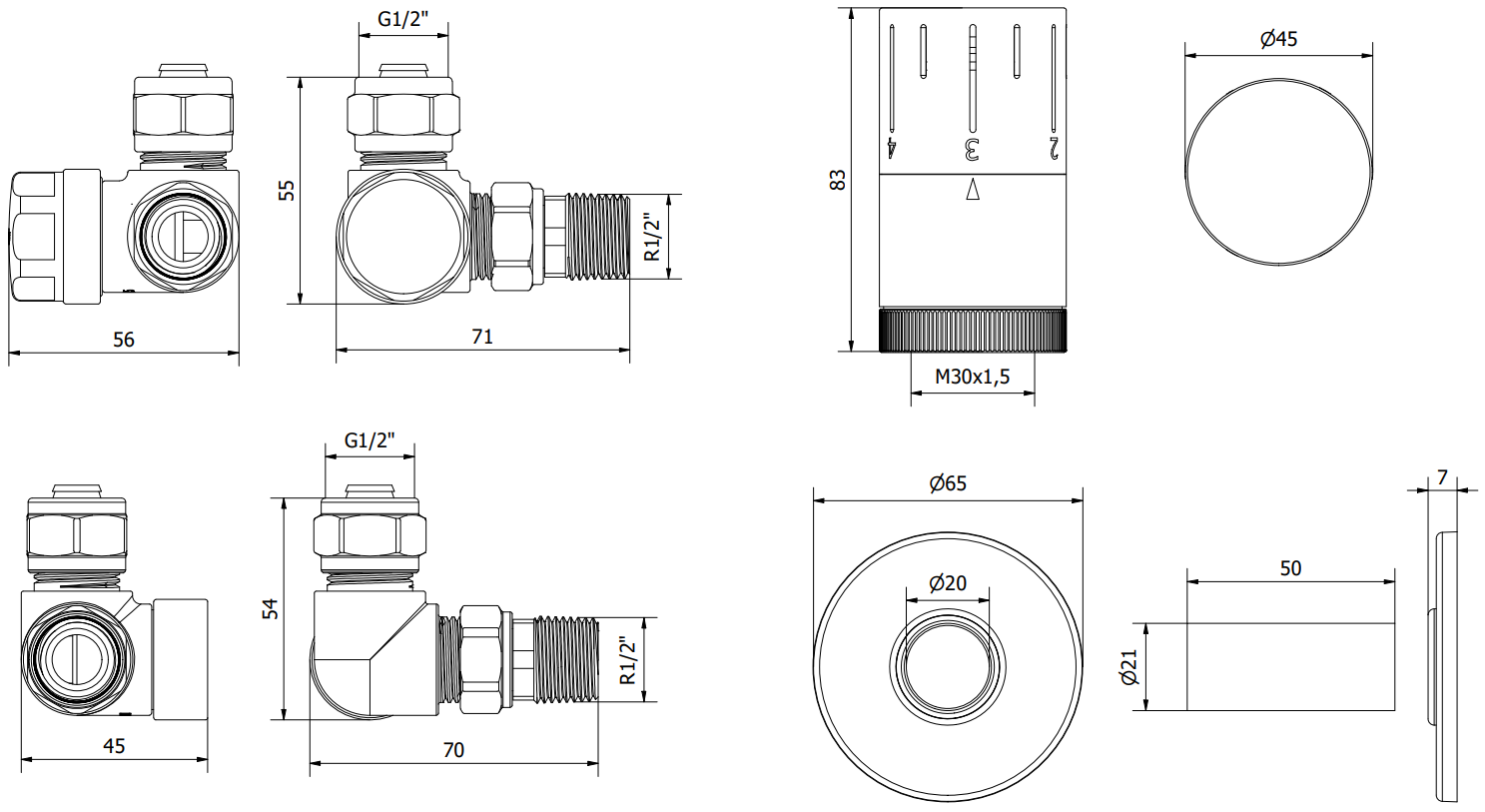 A készlet tartalmaz táp- és elzárószelepet a radiátorhoz