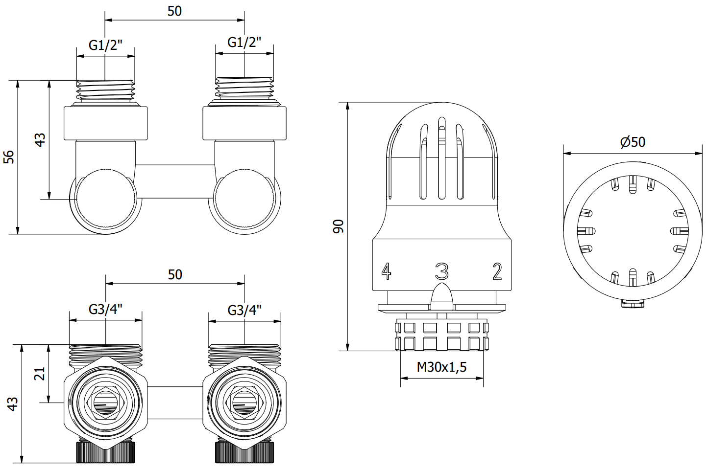 Szelep csatlakozó átmérője: G 1/2" és G 3/4"