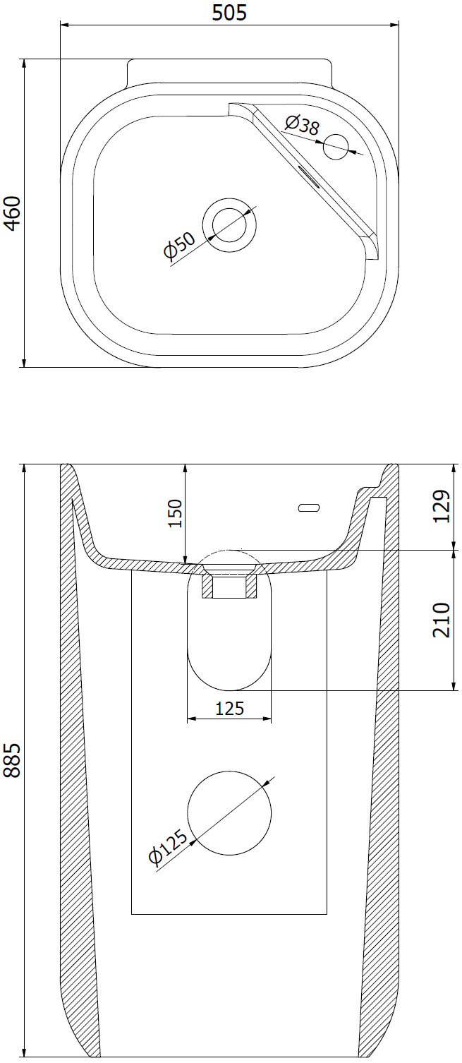 A túlfolyó nyílást "biztonsági nyílásnak" nevezik. Ezen keresztül távozik a felesleges víz, így a víz nem lép ki a termék peremén kívülre, amikor az alsó lefolyó zárva van. Ez egy nagyon biztonságos és praktikus megoldás.