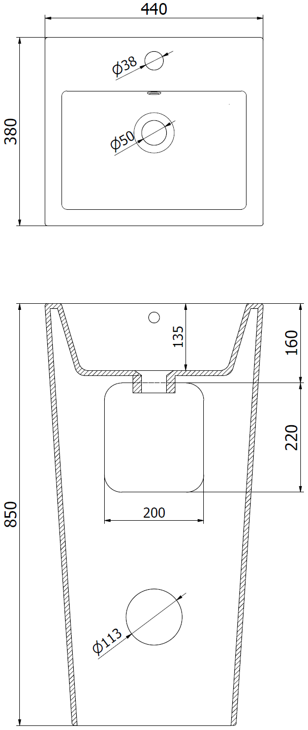 A mosdókagyló rendelkezik egy nyílással, amelybe csaptelepet szerelhetünk. Ez lehetővé teszi az értékes hely megtakarítását a fürdőszobában, valamint kiemeli annak esztétikáját. Ez a megoldás megkönnyíti a mosdókagyló körüli tisztaság fenntartását is.