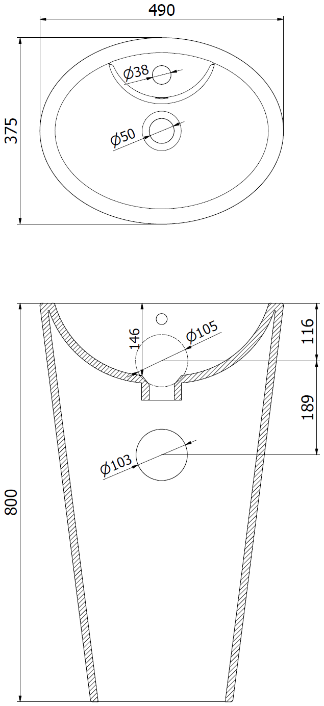 A mosdókagyló rendelkezik egy nyílással, amelybe csaptelepet szerelhetünk. Ez lehetővé teszi az értékes hely megtakarítását a fürdőszobában, valamint kiemeli annak esztétikáját. Ez a megoldás megkönnyíti a mosdókagyló körüli tisztaság fenntartását is.