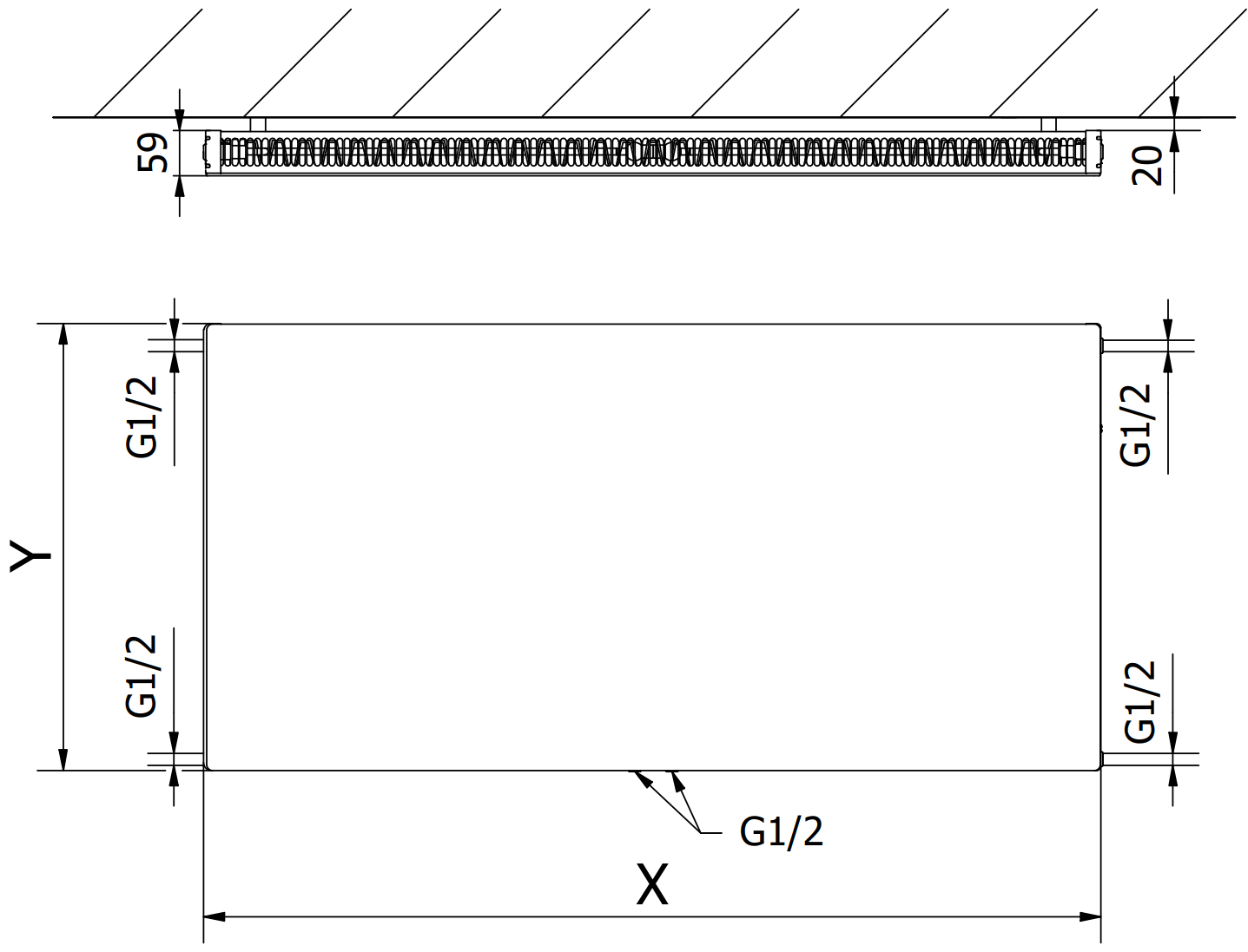 A képek a radiátort 600 x 1200 mm-es méretben ábrázolják.