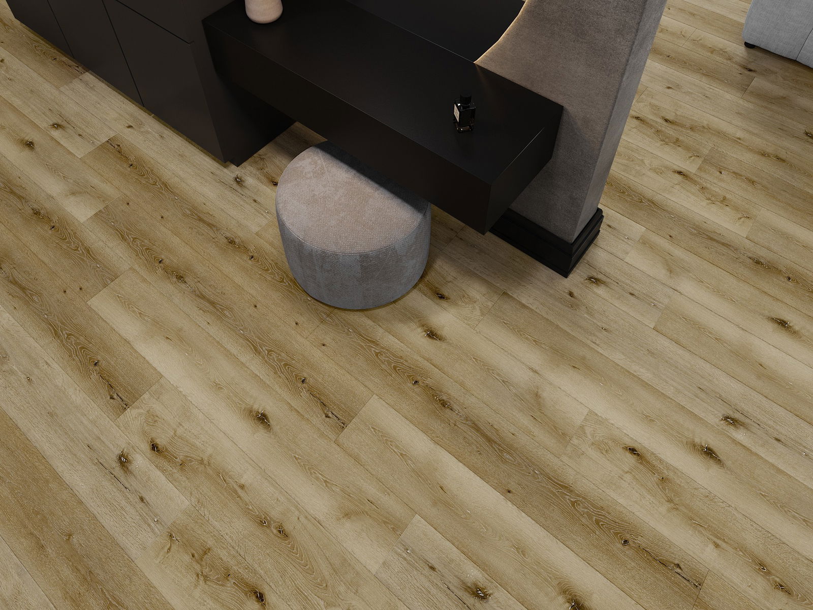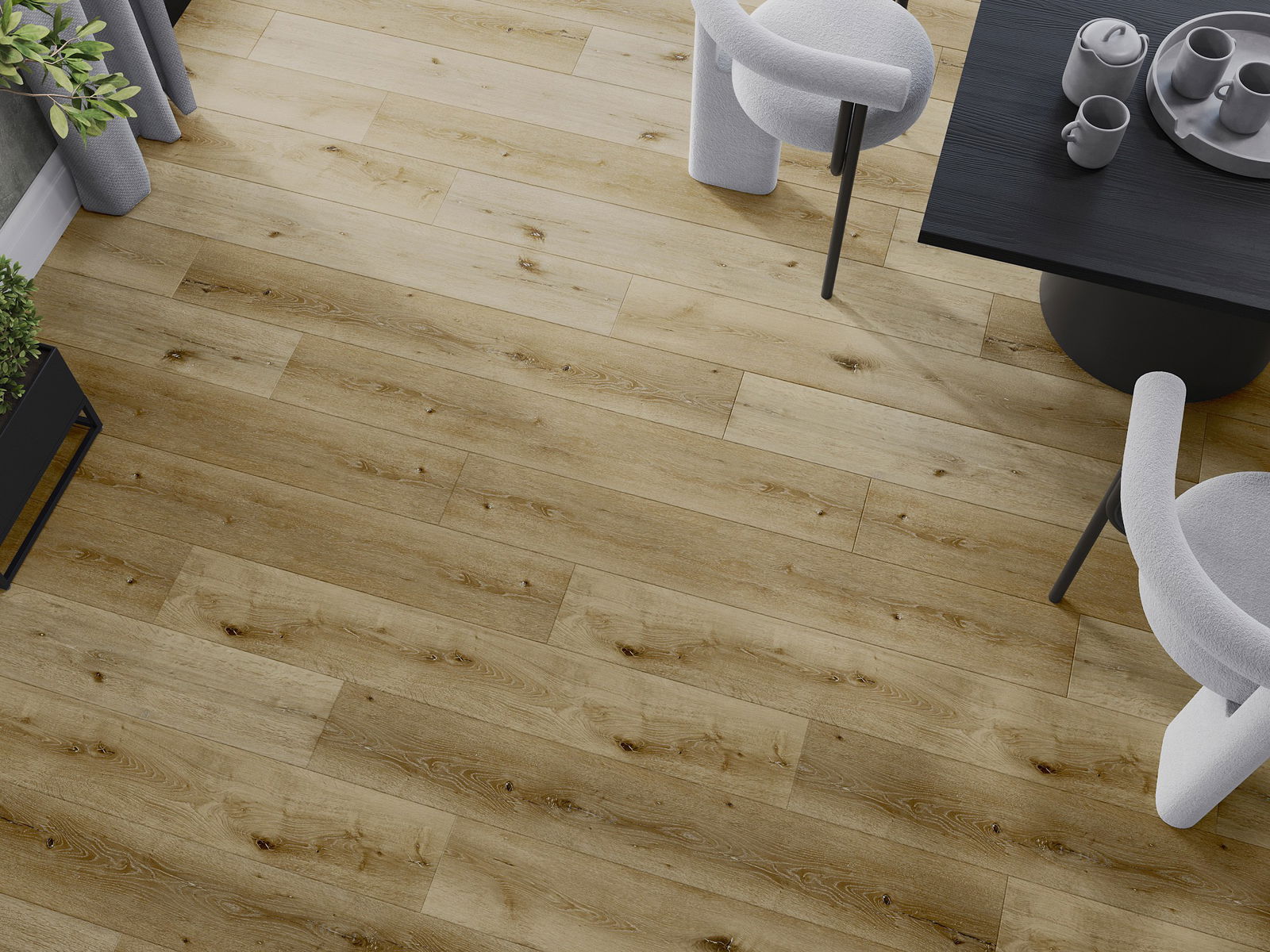 A panelek négyoldalú fugával rendelkeznek - minden oldaluk úgy lett kimarva, hogy lerakás után V alakú csatlakozást hozzanak létre. Ez a kialakítás egyértelműbb struktúrát kölcsönöz a padlónak, ami mélységet és esztétikus jelleget ad neki. Ez a hatás különösen értékelt a modern elrendezésekben, ahol a részletek kiemelik a belső tér egyedi megjelenését.
