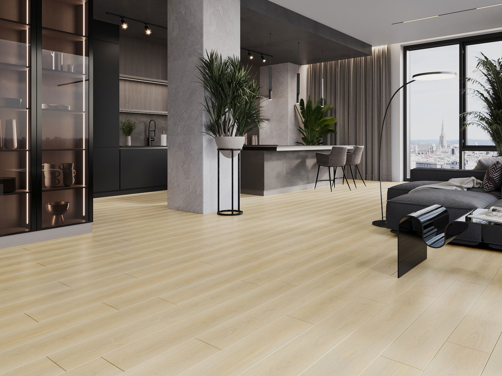A panelek 4 oldali fugával rendelkeznek - minden oldal úgy lett kimarva, hogy összerakás után V alakú illesztés keletkezzen. Az ilyen dizájn hatására a padló kifejezettebb szerkezetet kap, ami mélységet és esztétikai jelleget ad neki. Ez a hatás különösen a modern berendezésekben értékelhető, ahol a részletek kiemelik a belső tér egyedi megjelenését.