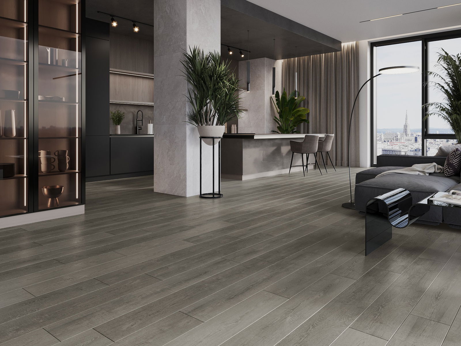 A panelek négyoldalú fugával rendelkeznek - minden oldaluk úgy lett kimarva, hogy lerakás után V alakú csatlakozást hozzanak létre. Ez a kialakítás egyértelműbb struktúrát kölcsönöz a padlónak, ami mélységet és esztétikus jelleget ad neki. Ez a hatás különösen értékelt a modern elrendezésekben, ahol a részletek kiemelik a belső tér egyedi megjelenését.