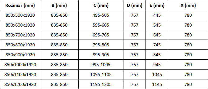 Méret: 85x100 cm (ajtó 85 cm, fal 100 cm)