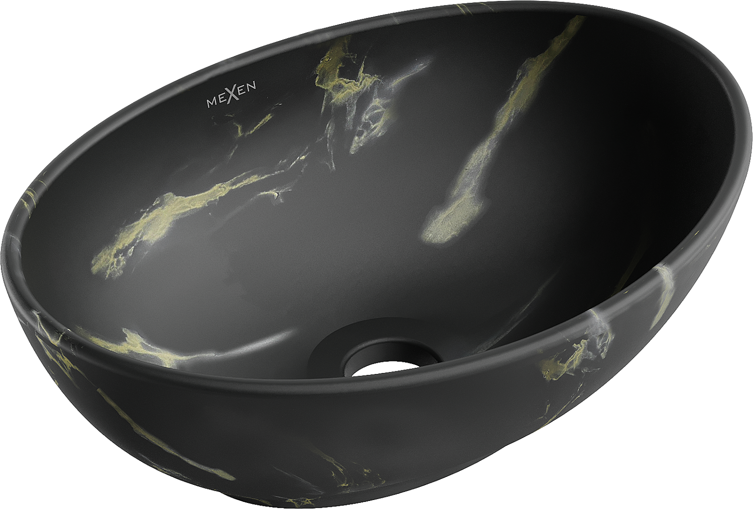 A Mexen Elza egy elegáns, pultra szerelhető mosdó, amelynek mérete 40,5 x 33 cm stílusos fekete kőkivitelben. Szanitér kerámiából készült, tartósság és modern dizájn jellemzi. Ez a mosdó ovális alakú és matt felületű, ami finom, de kifinomult megjelenést kölcsönöz neki. A csaptelep és a túlfolyó nyílások hiánya miatt ideálisan illeszkedik a minimalista elrendezésekhez. A védőbevonatnak köszönhetően a termék könnyen tisztán tartható és hosszú ideig megőrzi fényét.