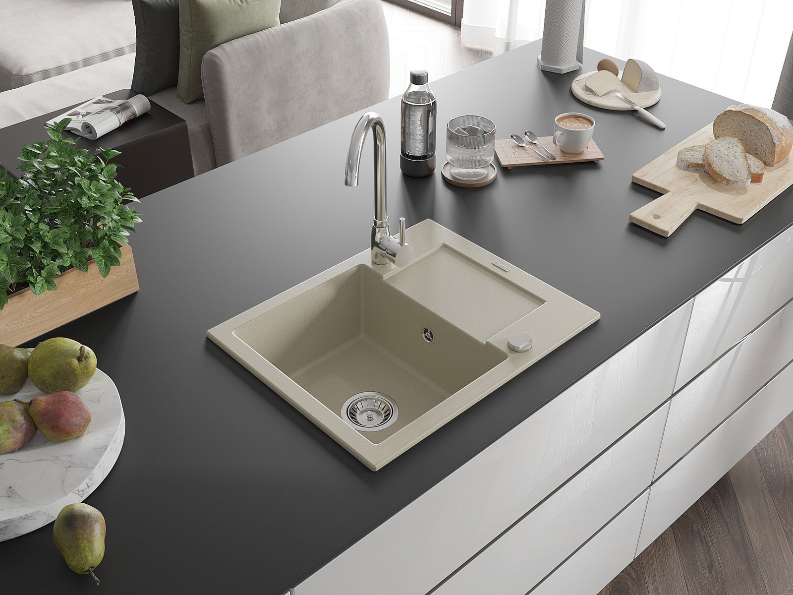 A mosogató kiváló minőségű gránitból készül. Ez egy elegáns és mindenekelőtt minden konyhához praktikus kiegészítés, stílusától függetlenül. A kiváló minőségű és a gránit tartósság biztosítja a sok éves használatát.