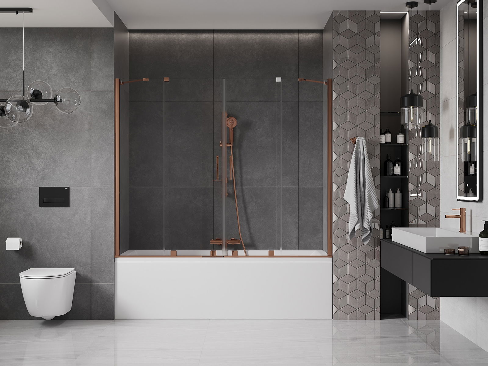 Mexen Velar Duo 2-szárnyú fürdőkád paraván, 190 x 150 cm, átlátszó, rózsaarany - 896-190-000-02-60