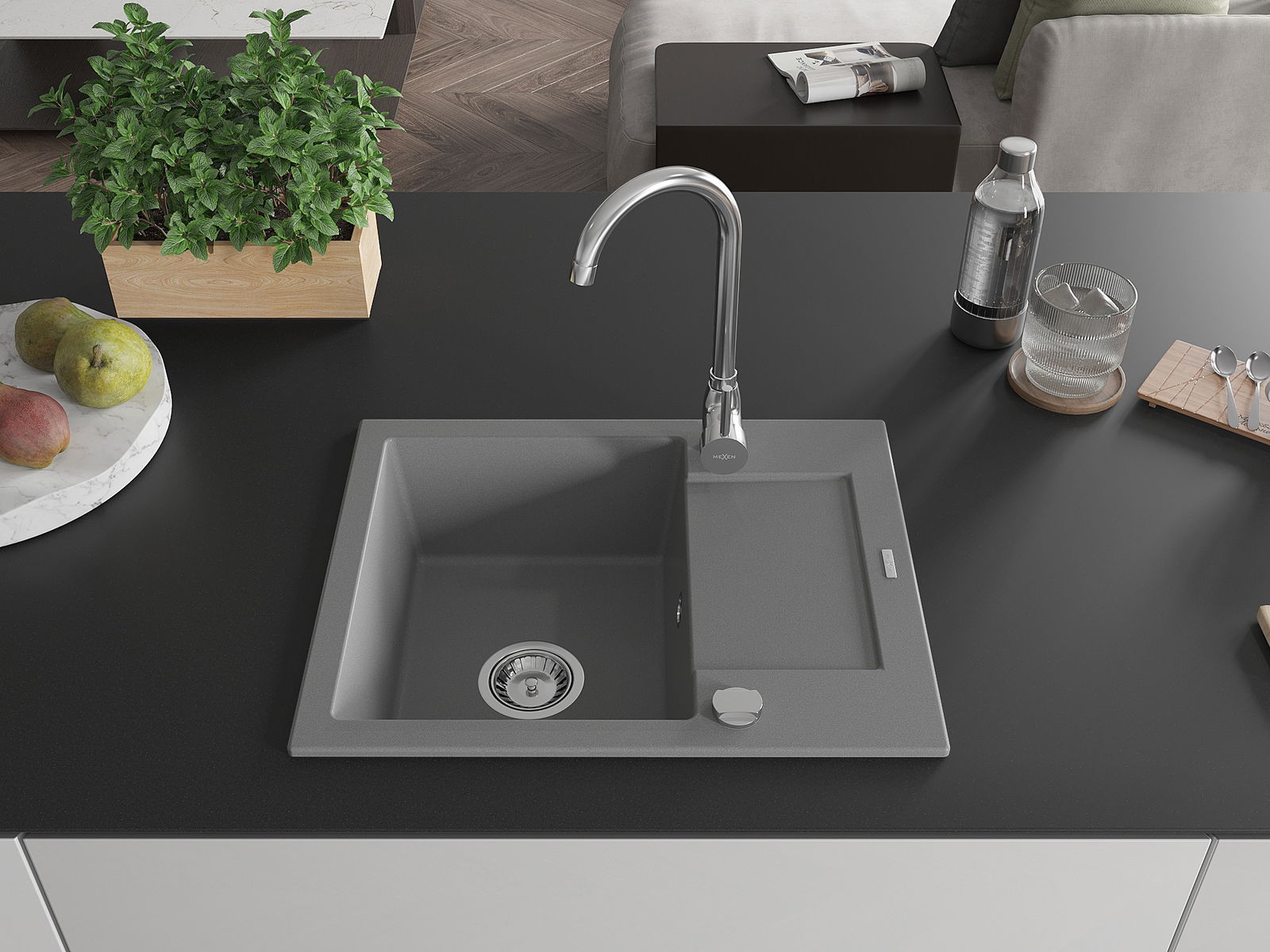 A mosogató magas minőségű gránitból készült. Elegáns, de mindenekelőtt praktikus kiegészítője minden konyhának, függetlenül annak stílusától. A gránit magas minősége és tartóssága hosszú távú használatot biztosít.