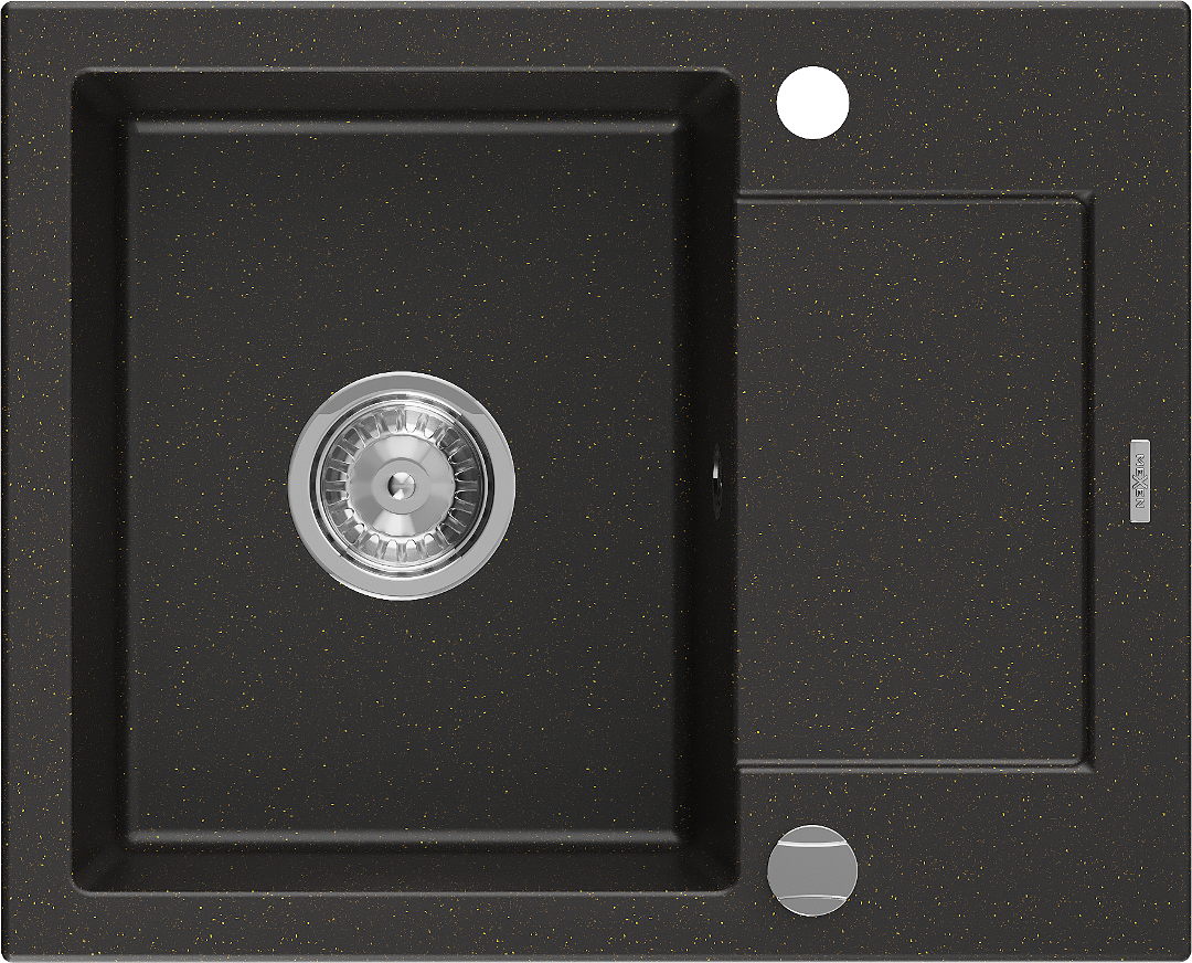 Mexen Enzo 1-medencés gránit mosogató csepegtetővel 576 x 465 mm, fekete/arany metál, króm szifon - 6506571005-75