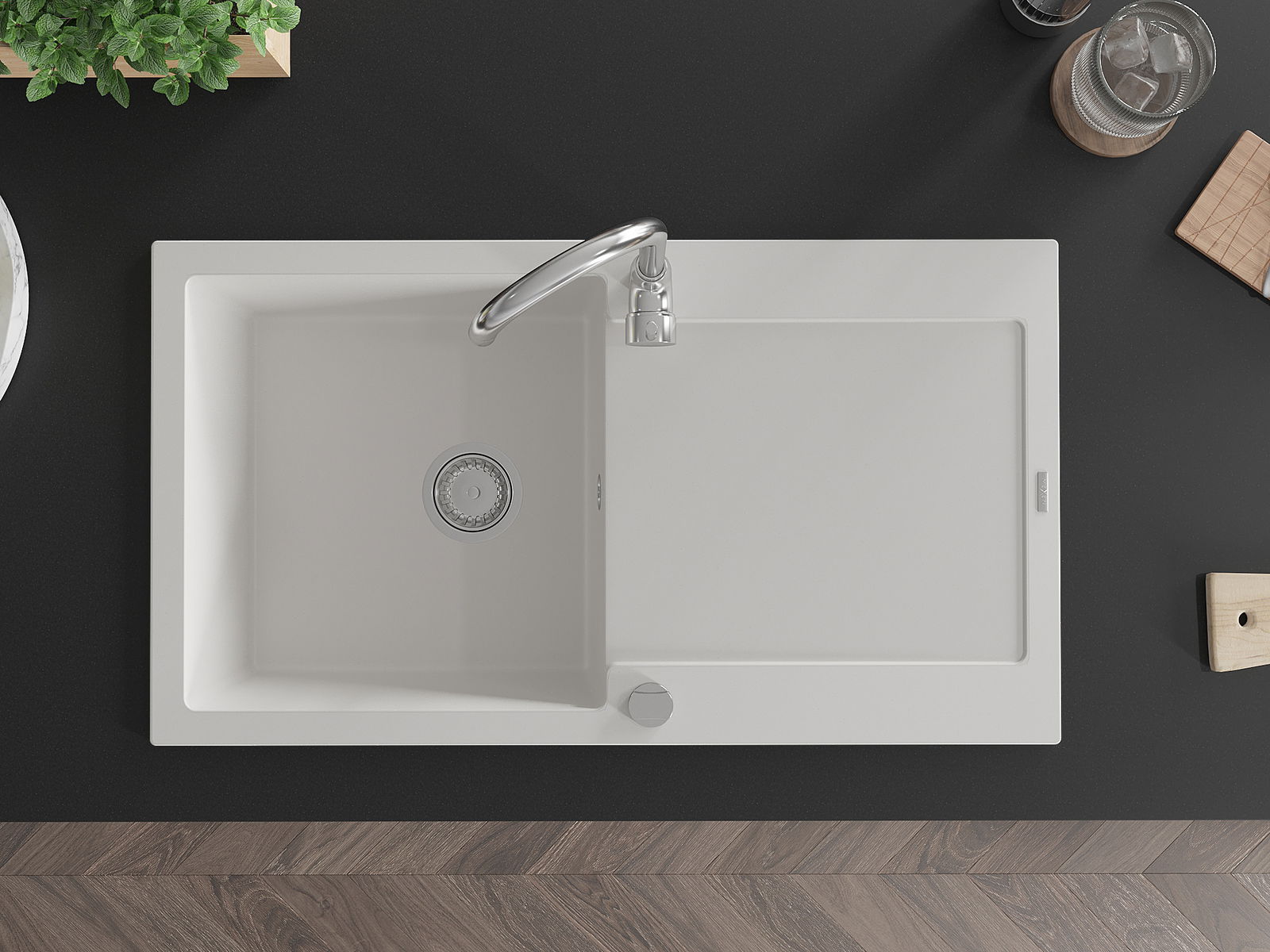 A mosogató felülete ellenáll a foltoknak és a elszíneződésnek, amelynek köszönhetően könnyű megtisztítani és hosszú ideig megtartja színét. Esztétikai és gyakorlatilag kiegészítve minden konyhát.