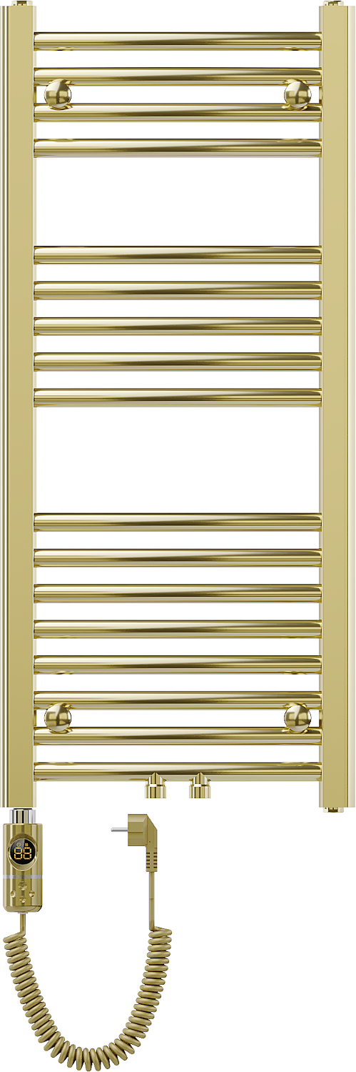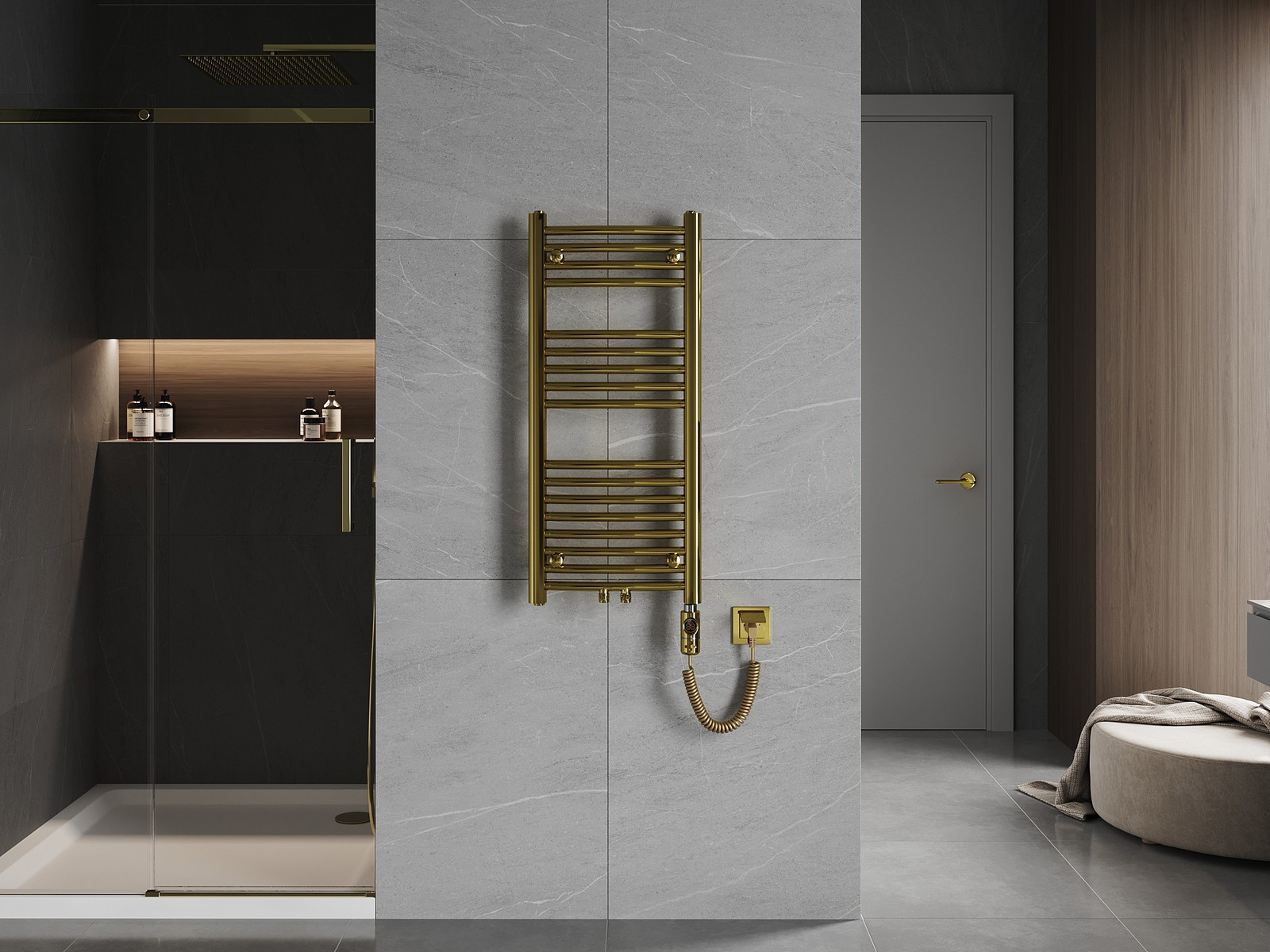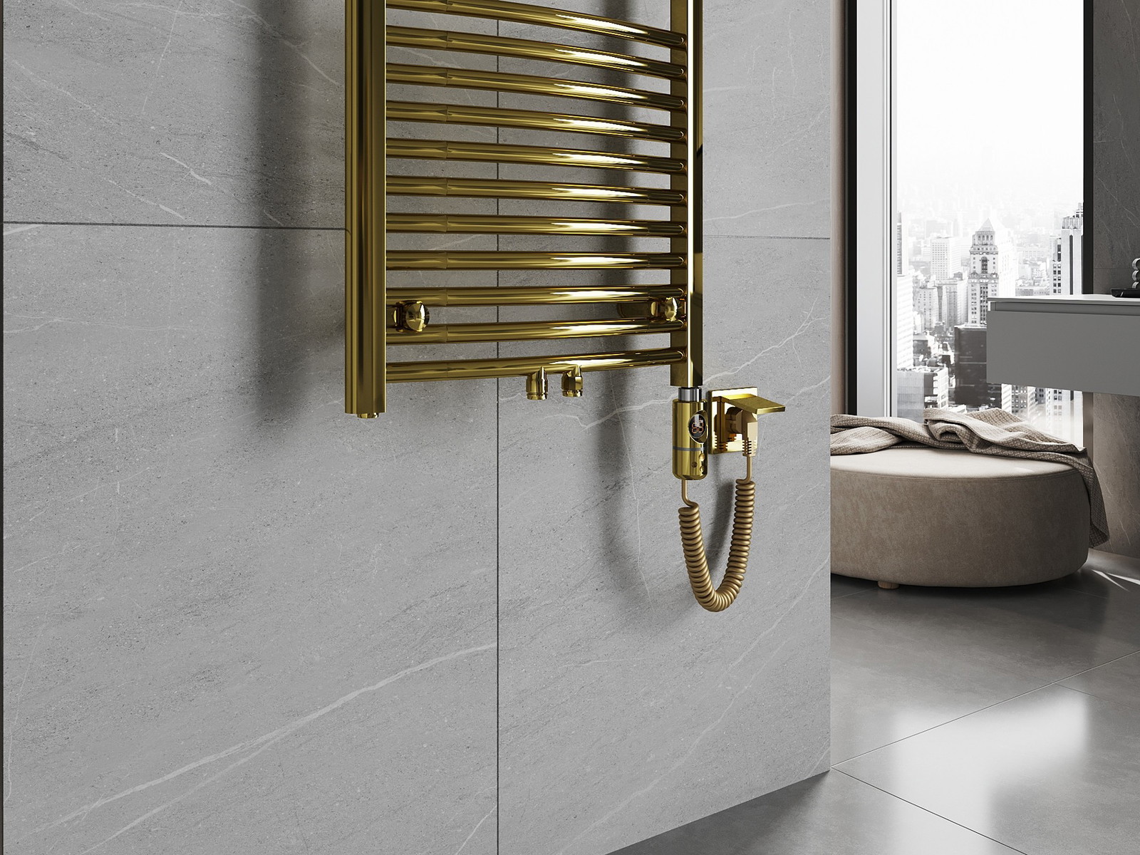 A Mexen Ares elektronikus fűtőtest 900 x 400 mm-es méretben és 300 W teljesítménnyel ideális megoldás a stílusos belső terekhez. Tartós acélból készült elegáns arany színben, modern dizájnt ötvöz a funkcionalitással. Az érintésvezérelt LED kijelzős fejlett vezérlési opcióknak köszönhetően a felhasználó könnyen beállíthatja az optimális 40°C-65°C közötti hőmérsékletet. A fűtőtest szárítási funkcióval, gyermekzárral és szárazon működés elleni védelemmel rendelkezik. A magas minőségű, korrózióálló lakk és az IP44 védettségi fokozatú burkolat tartósságot és biztonságot garantál. A mellékelt tartozékok révén a szerelés gyors és egyszerű. Ideális fűtésre és szárításra a Comfort opcióval.