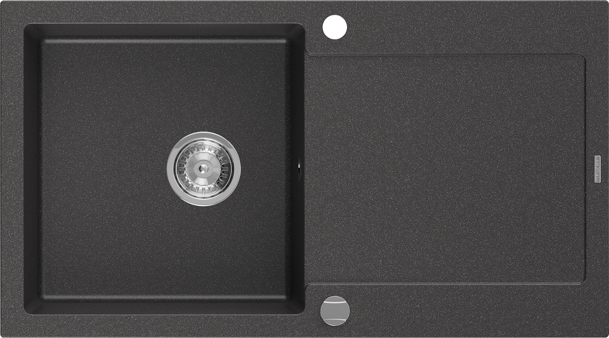 Mexen Leo egymedencés gránit mosogató csepegtetővel 900 x 500 mm, fekete színű szórt, króm szifon - 6501901010-76