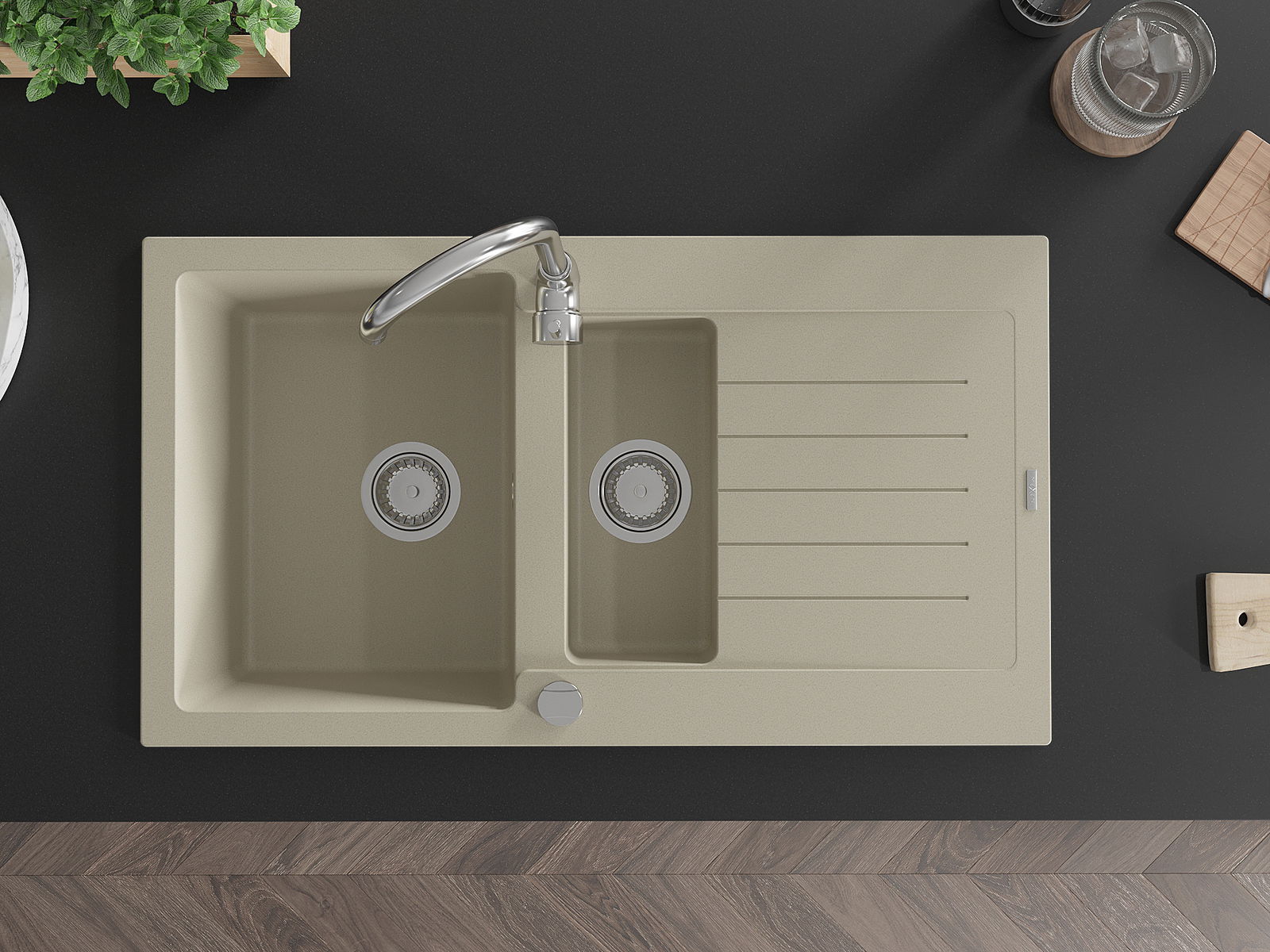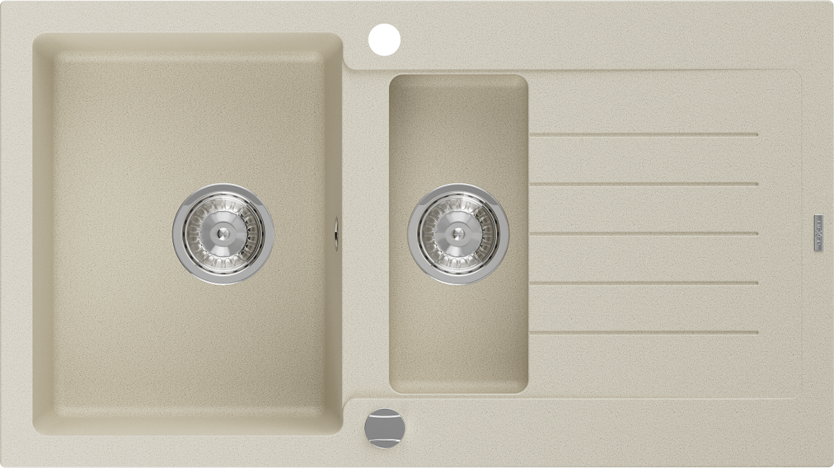 A mosogató felülete ellenáll a foltoknak és a elszíneződésnek, amelynek köszönhetően könnyű megtisztítani és hosszú ideig megtartja színét. Esztétikai és gyakorlatilag kiegészítve minden konyhát.
