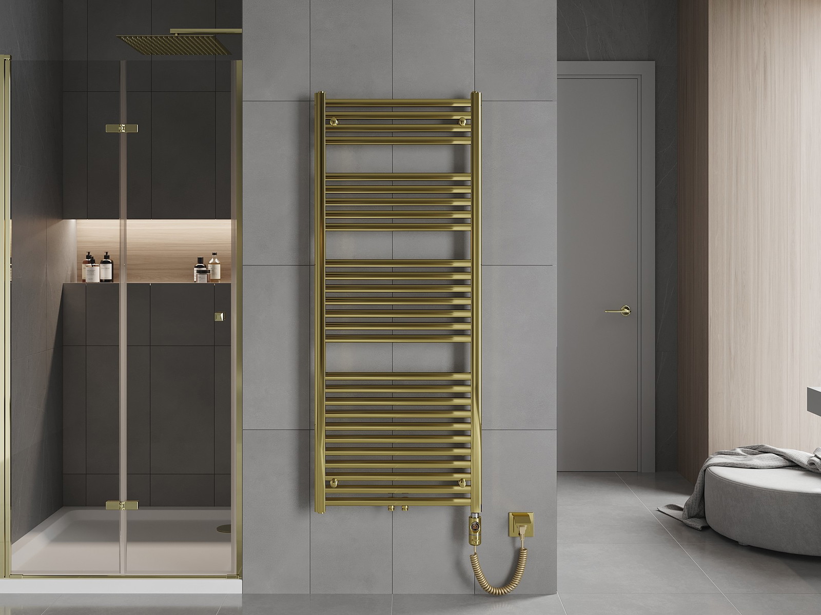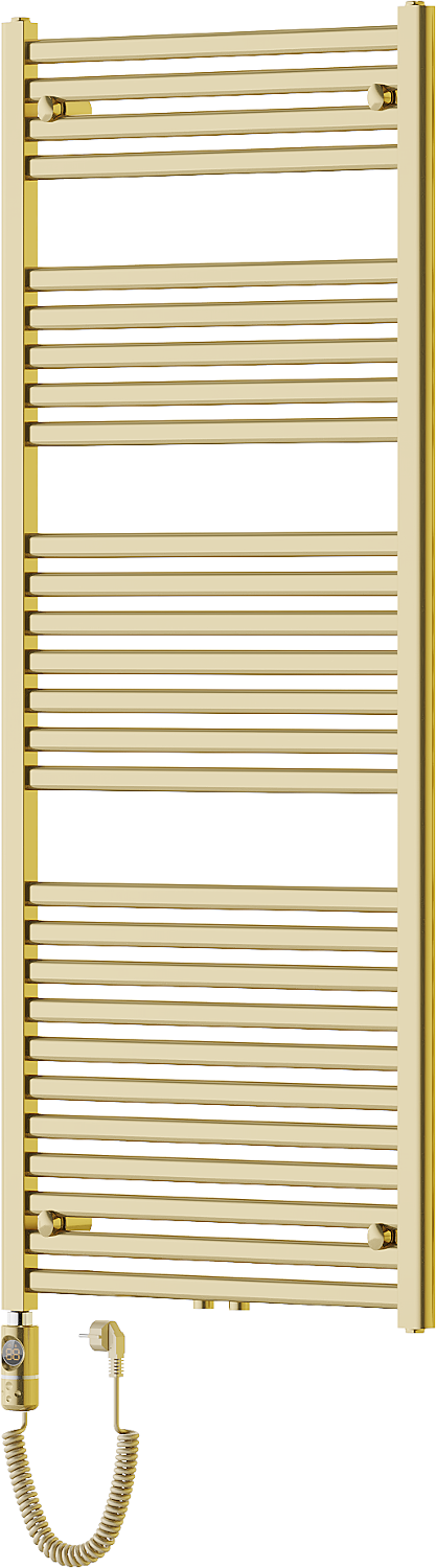 A Mexen Hades egy elegáns, arany színű elektromos radiátor, amely ötvözi a stílust a funkcionalitással. Méretei 1500 x 600 mm, tartós acélból készült, 600 W fűtőteljesítményt kínál és 27 fűtőrúdja van. Érintőképernyős LED vezérlésének és a Sensitive funkciónak köszönhetően pontosan beállítható 40°C és 65°C között. A Comfort opciók megkönnyítik a szárítást, míg a gyerekzár növeli a biztonságot. Beépített termosztáttal és „száraz” működés elleni védelemmel, valamint korrózióálló festékbevonattal van ellátva. Védelmi szintje IP44, és a kiváló minőségű szerelés tovább növeli használati értékét.