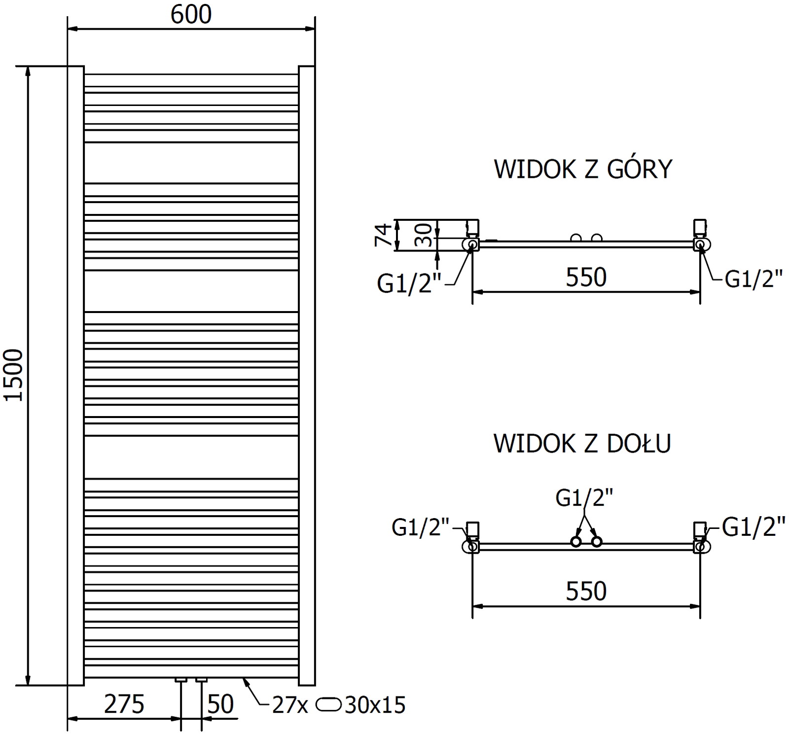 Fűtőtest teljes hossza: 656 mm