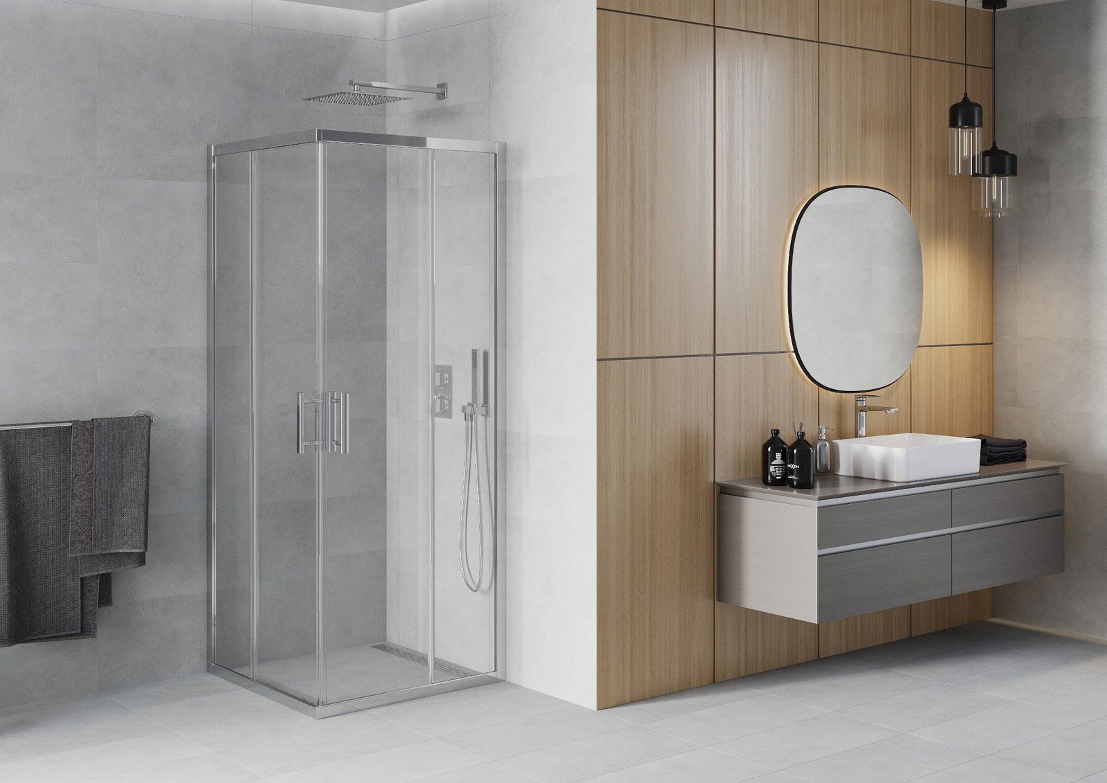 A tolóajtók speciális útmutatók körül mozognak, és nem igényelnek további helyet a kinyitáshoz, így kisebb fürdőszobákban fognak működni. A tartós műanyagból készült dupla görgőknek köszönhetően mozgásuk folyékony.