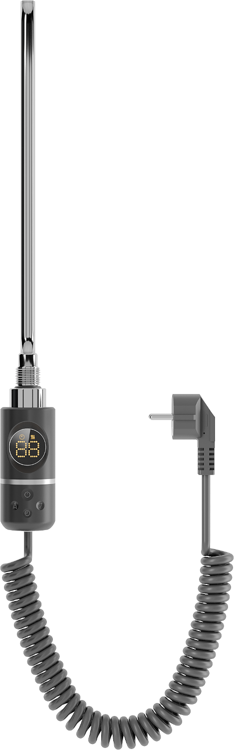 A Mexen FA-I 600 W-os elektromos fűtőpatron, antracit, kiváló választás a hatékony fűtéshez. Teljes hossza 656 mm, a fűtőelem hossza 540 mm. 600 W-os fűtőteljesítményével és 230V/50 Hz-es üzemi feszültségével tűnik ki. 1,5 m-es csatlakozó kábellel és G 1/2" menetes csatlakozóval rendelkezik. Az IP44 védettségi szint biztonságot nyújt, a LED kijelző pedig megkönnyíti a használatot. Emellett a fűtőpatron olyan funkciókat kínál, mint a hőmérséklet beállítása, szárítási opció és gyermekzár.